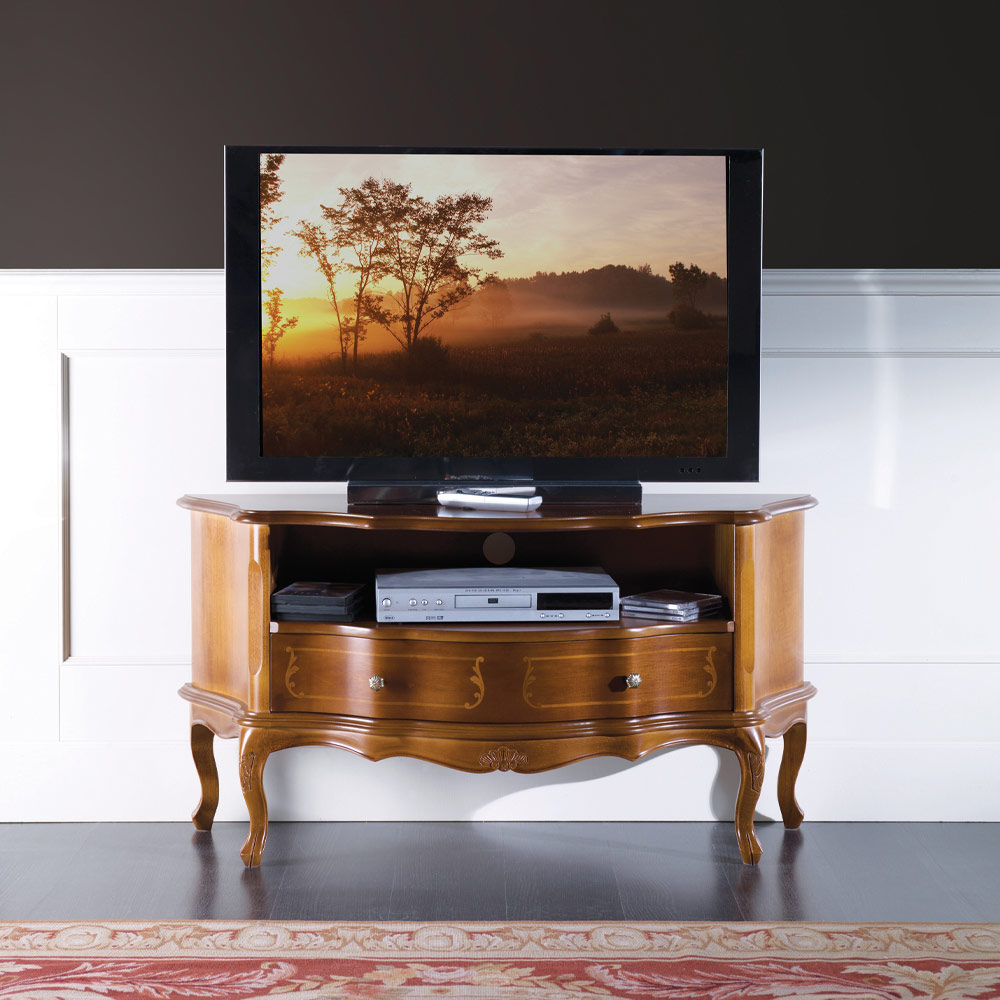 TV-Ständer im klassischen Stil mit praktischer Schublade und Fach, komplett aus Holz mit Walnuss-Intarsien-Finish, perfekt für die elegante Einrichtung jedes Wohnbereichs. Ein einzigartiges und raffiniertes Accessoire, vollständig in Italien von erfahrenen Handwerksmeistern hergestellt, Meistern der Kunst, die jedes Stück mit Geschick und Sinn für Eleganz fertigstellen. Die Produktion erfolgt aus hochwertigen Materialien und die Verarbeitung erfolgt vonHand mit größter Sorgfalt und Professionalität, die Made in Italy -Produkte auszeichnet.