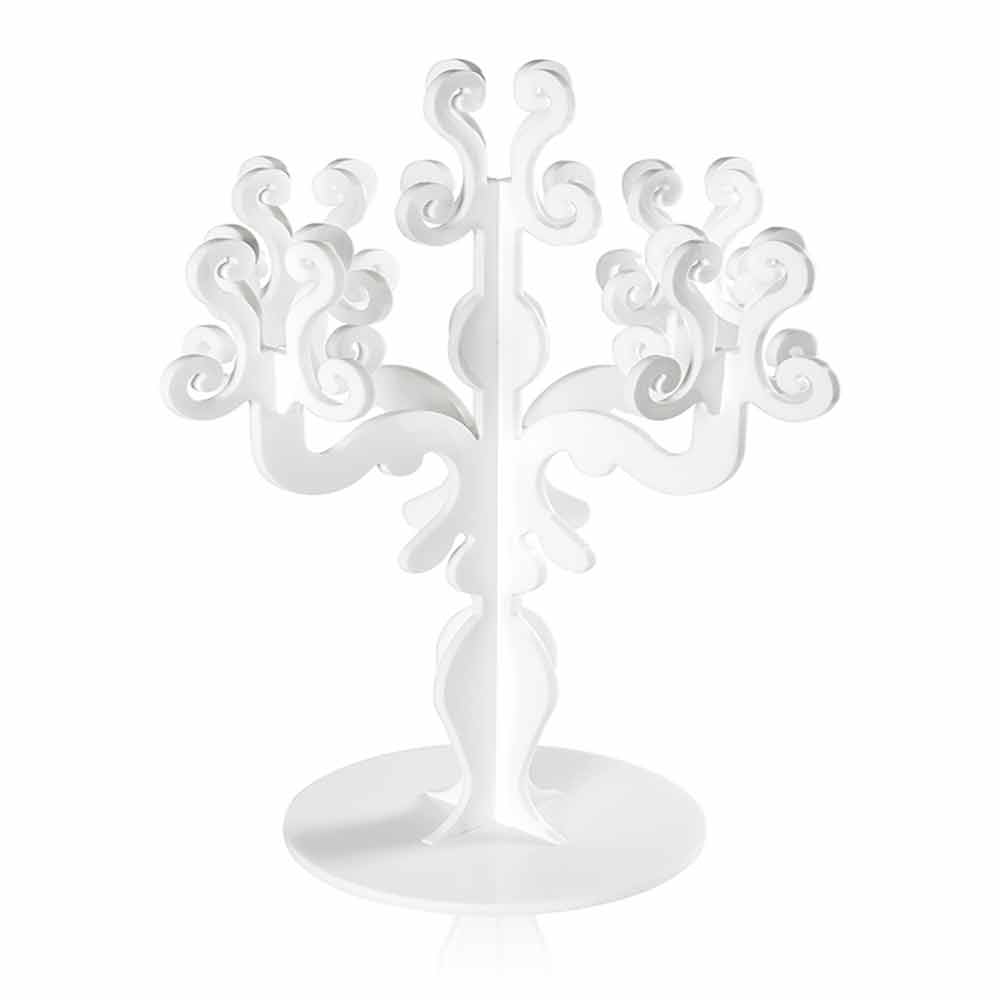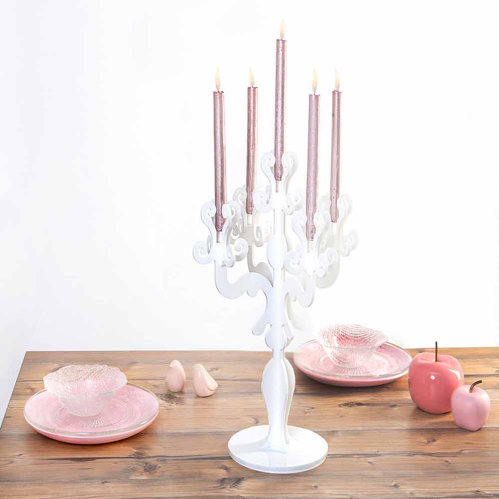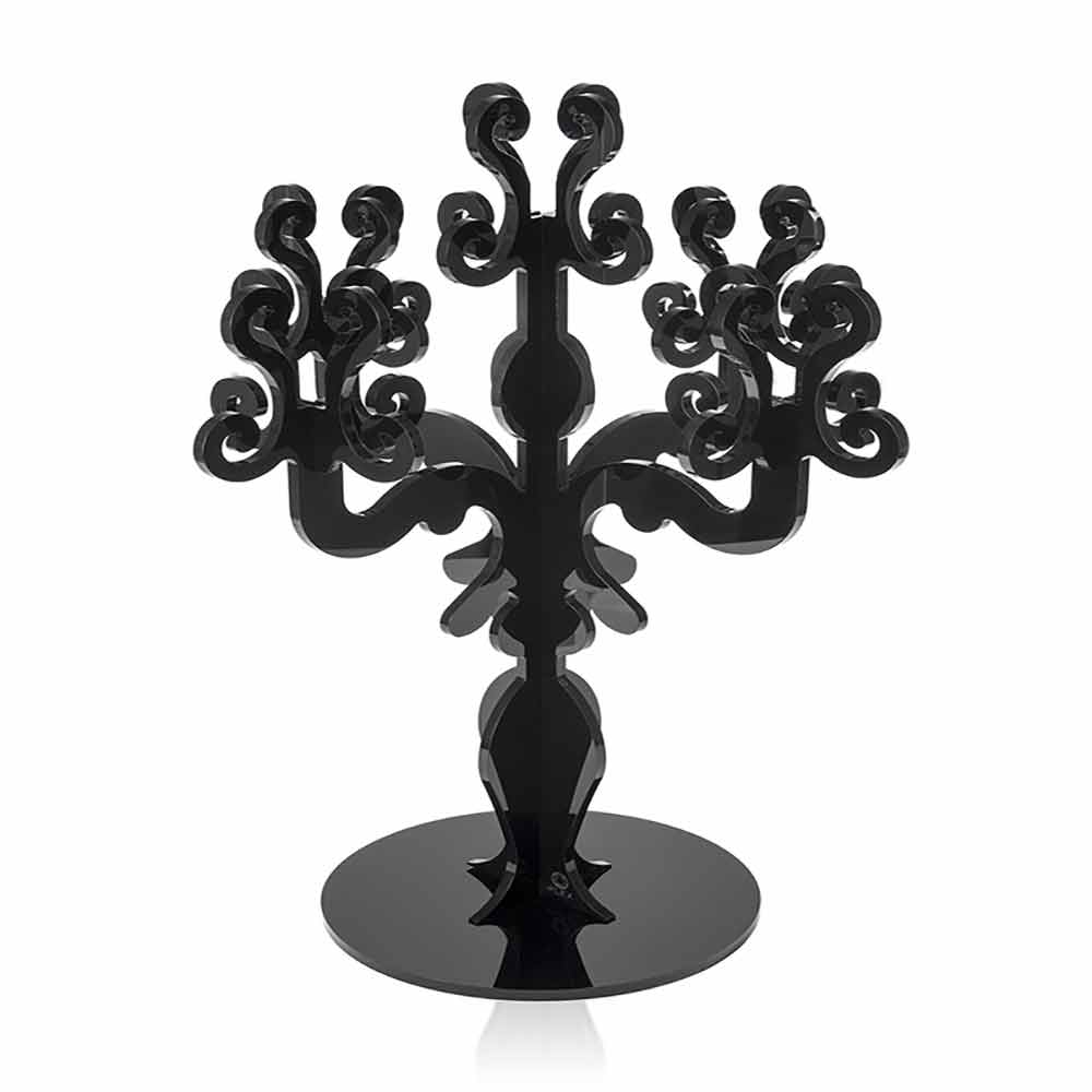 Mittlerer Kerzenhalter mit 5 Armen aus Plexiglas: Arbus Der Arbus-Kerzenhalter ist elegant und mit einem an unsere Zeit angepassten Renaissance-Geschmack: 5 Arme aus transparentem PMMA-Plexiglas. Die lasergeschnittenen Formen erinnern an die kostbaren Ornamente der Renaissance-Kerzenhalter aus Bergkristall. Aufgrund der physikalisch-technischen Eigenschaften des Plexiglases (stoßfest, unverformbar, unveränderlich, wärmeisolierend) eignet sich der Kerzenhalter sowohl für den Innen- als auch für den Außenbereich. Seine Helligkeit und Brillanz bleiben im Laufe der Zeit unverändert. Das verwendete PMMA-Plexiglas aus jungfräulichem Polymer ist ungiftig, hypoallergen, geruchlos und antibakteriell. 100% wiederverwertbar. Gedacht, entworfen und hergestellt in Italien mit italienischen Materialien. Seine Maße sind: L 36 x P 36 x H 50 cm. Erhältlich in folgenden Farben: schwarz, weiß, transparent rauchgrau und transparent.