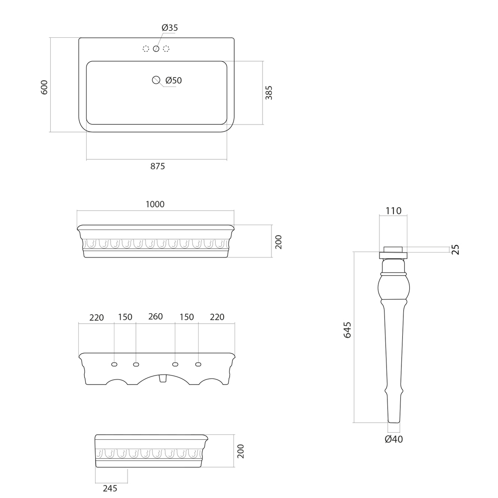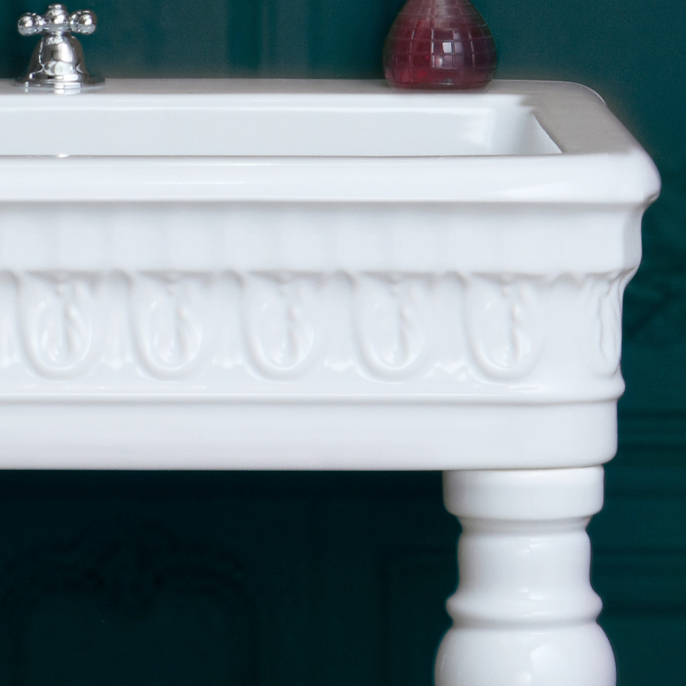 Konsolenwaschbecken aus weißer Keramik, handgefertigt durch eine 100% Made in Italy-Produktion . Dieses majestätische und imposante Einrichtungsaccessoire mit klassischem und raffiniertem Design entspringt dem Wunsch, eine Lösung zum Leben zu erwecken, die sowohl in klassischen Räumen als auch in Umgebungen mit moderner Einrichtung eine perfekte Harmonie schafft, in der es einen ungewöhnlichen Kontrast für ein kreatives und originelles bildet Wirkung .