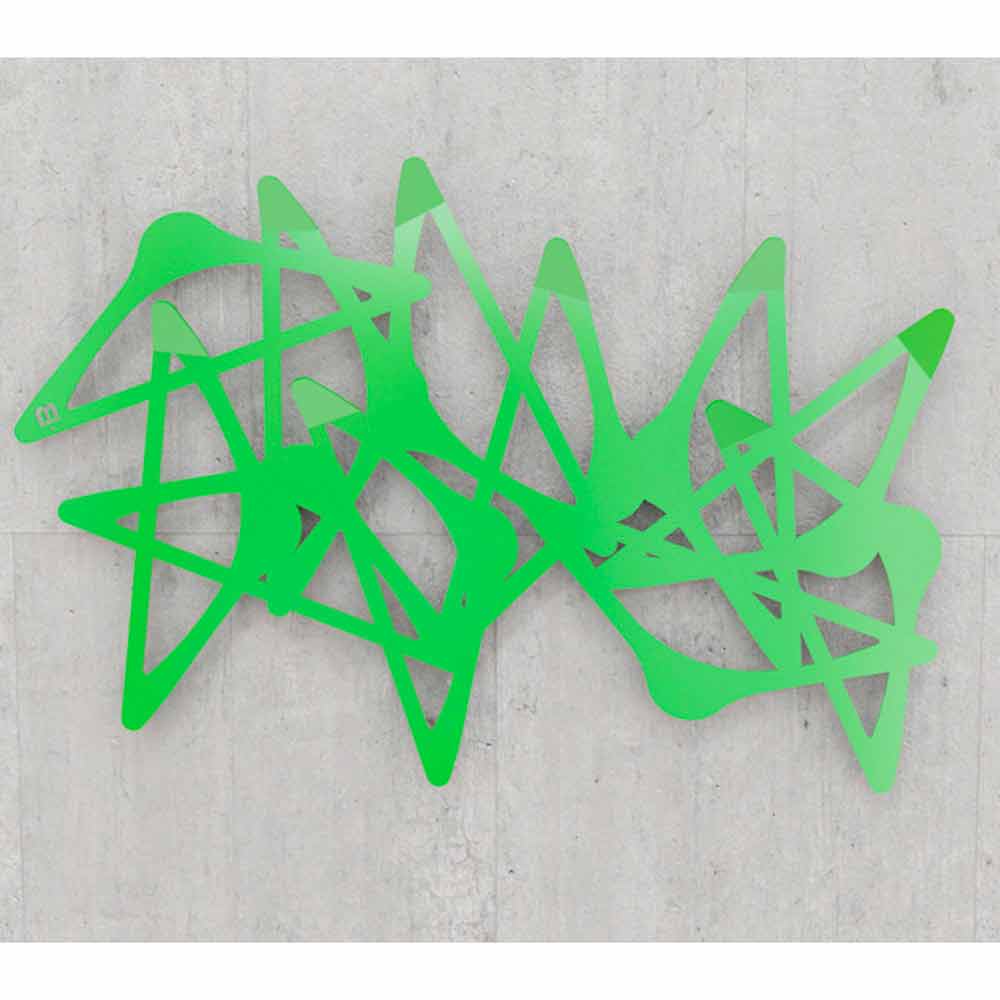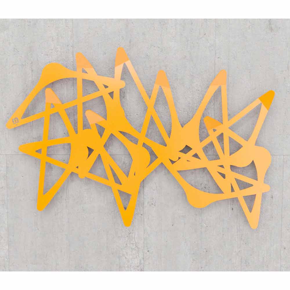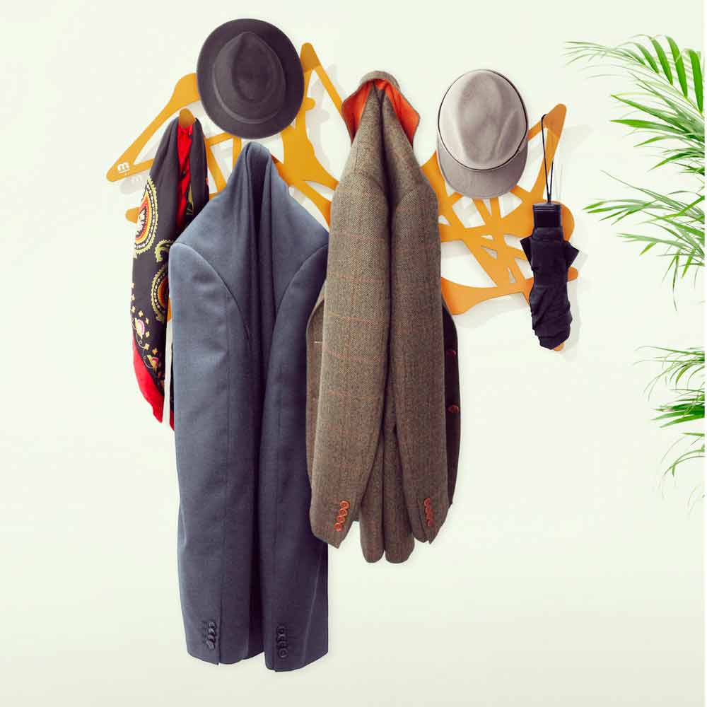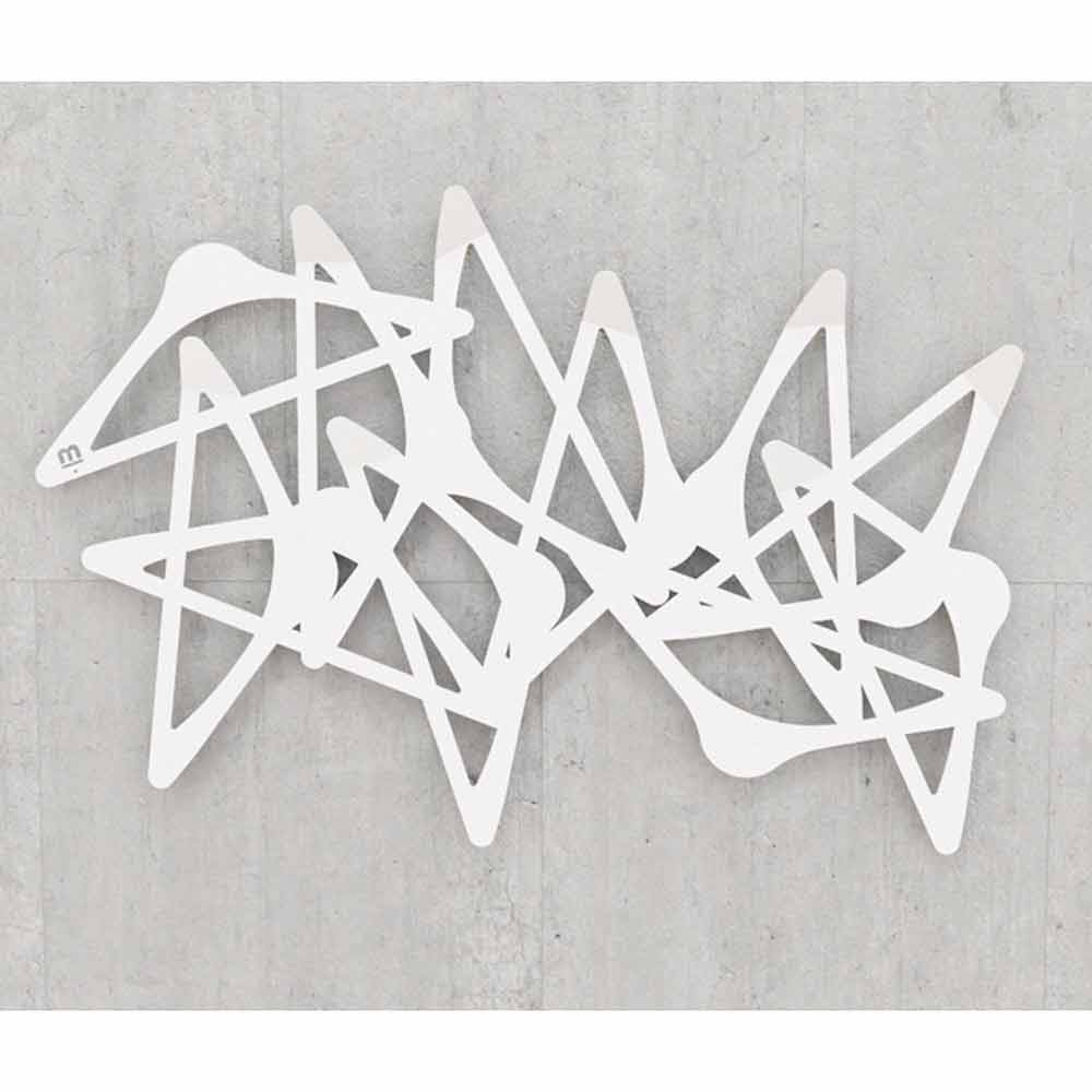 Bringen Sie Ordnung in Unordnung. Wenn nicht in den Worten, zumindest mit den Jacken und Mäntel. BlaBla ist ein Sympatisch Kleiderbügel aus lasergeschnittenen Metall, mit der Form eines chaotisch und unordentlich stilisierten Kleiderbügel. BlaBla ist in Weiß, Rot, Schwarz, Orange und Grün erhältlich.