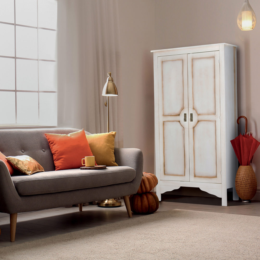VORSICHTSMASSNAHMEN: Da Holz ein lebendiges und feuchtigkeitsempfindliches Material ist, muss besonders darauf geachtet werden, die Möbel in Häusern aufzustellen, deren Putz mindestens einen Monat lang ausgeruht und trocken war. Wir empfehlen jedoch, für einige Monate einen Abstand von mindestens 5 Zentimetern zur Wand zu lassen und die Räume häufig zu lüften.