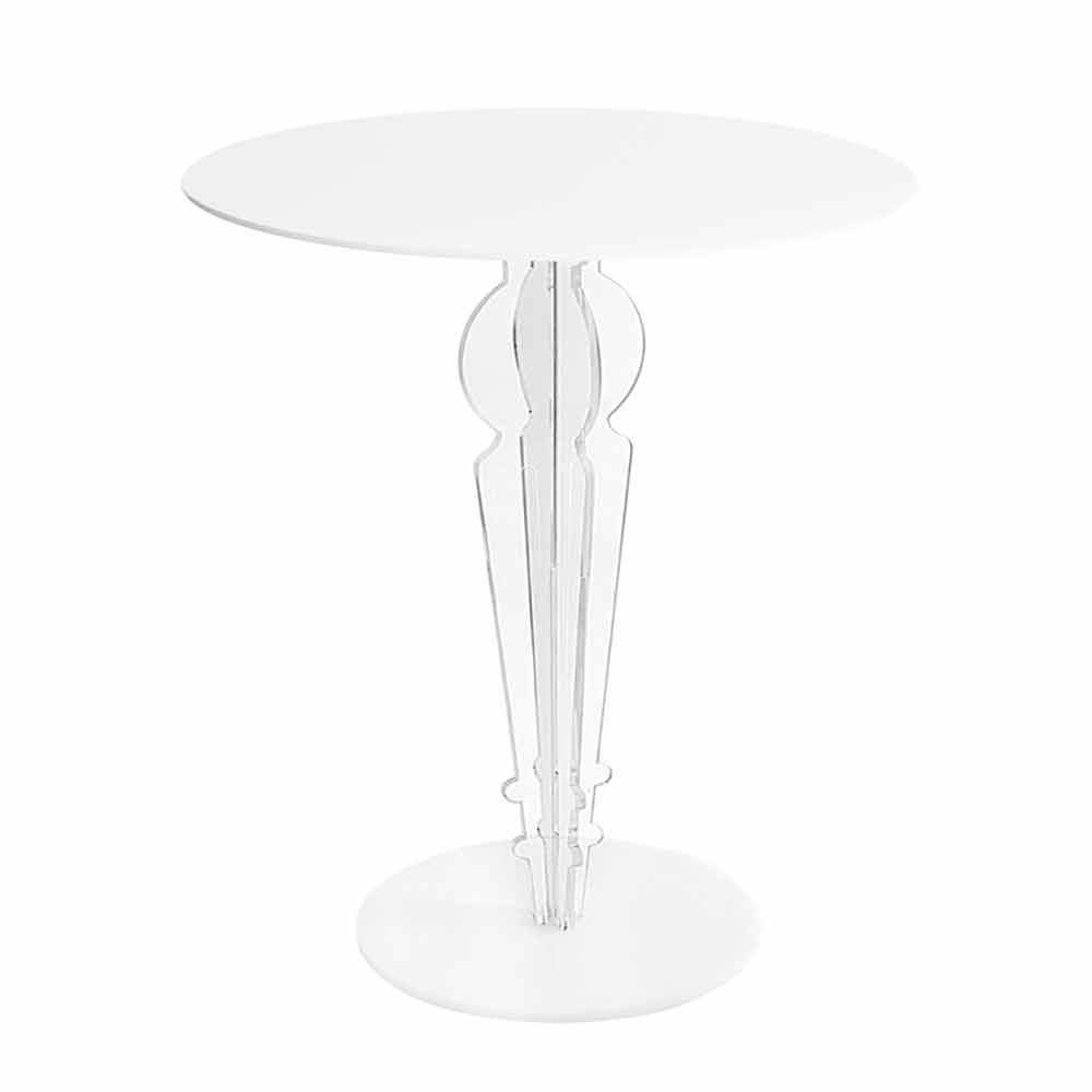 Klassischer Designtisch, Cles Der kleine Tisch CLES ist eine Neuinterpretation der luxuriösen kleinen Tische des 18. Jahrhunderts mit einem einzigen Mittelfuß. Es besteht aus einem extrem reinen PMMA-Acrylkristall mit einem transparenten Bein und einer Oberfläche in vollweißer Farbe. Die meisterhaften Laserschnitte entlang des gesamten Beins erhöhen die Brillanz und Transparenz, die im Laufe der Zeit unverändert erhalten bleiben. Das verwendete PMMA-Plexiglas aus jungfräulichem Polymer ist ungiftig, hypoallergen, geruchlos und antibakteriell. 100% wiederverwertbar. Gedacht, entworfen und hergestellt in Italien mit italienischem Material.