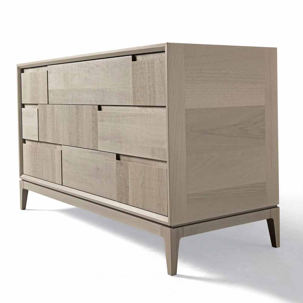 Innovatives und originelles Design dank ausgefeilter Verarbeitung der Schubladen. Die Linien, die die Oberfläche mit abwechselnden rechteckigen Elementen charakterisieren, geben den Oberflächen eine Bewegung.