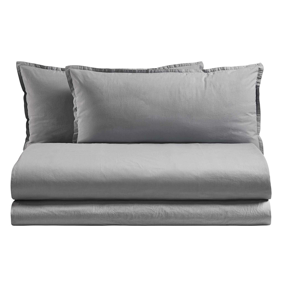 Kompletter Doppelbettbezug aus reiner, stückgefärbter Baumwolle