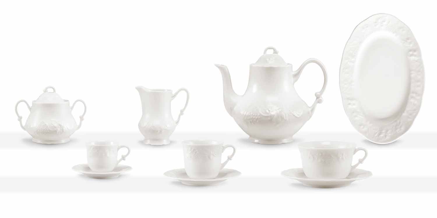 Kompletter Frühstücksservice 22 Stück aus weißem Porzellan - Gimignano