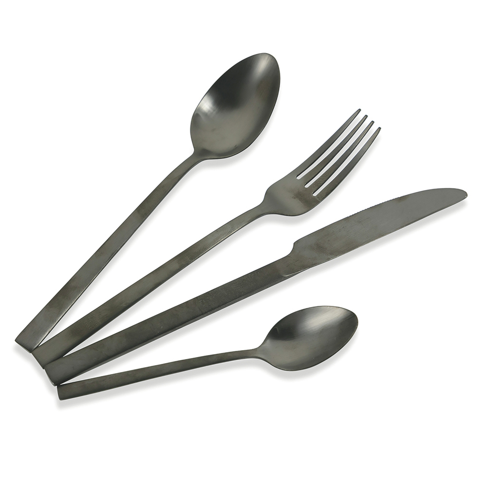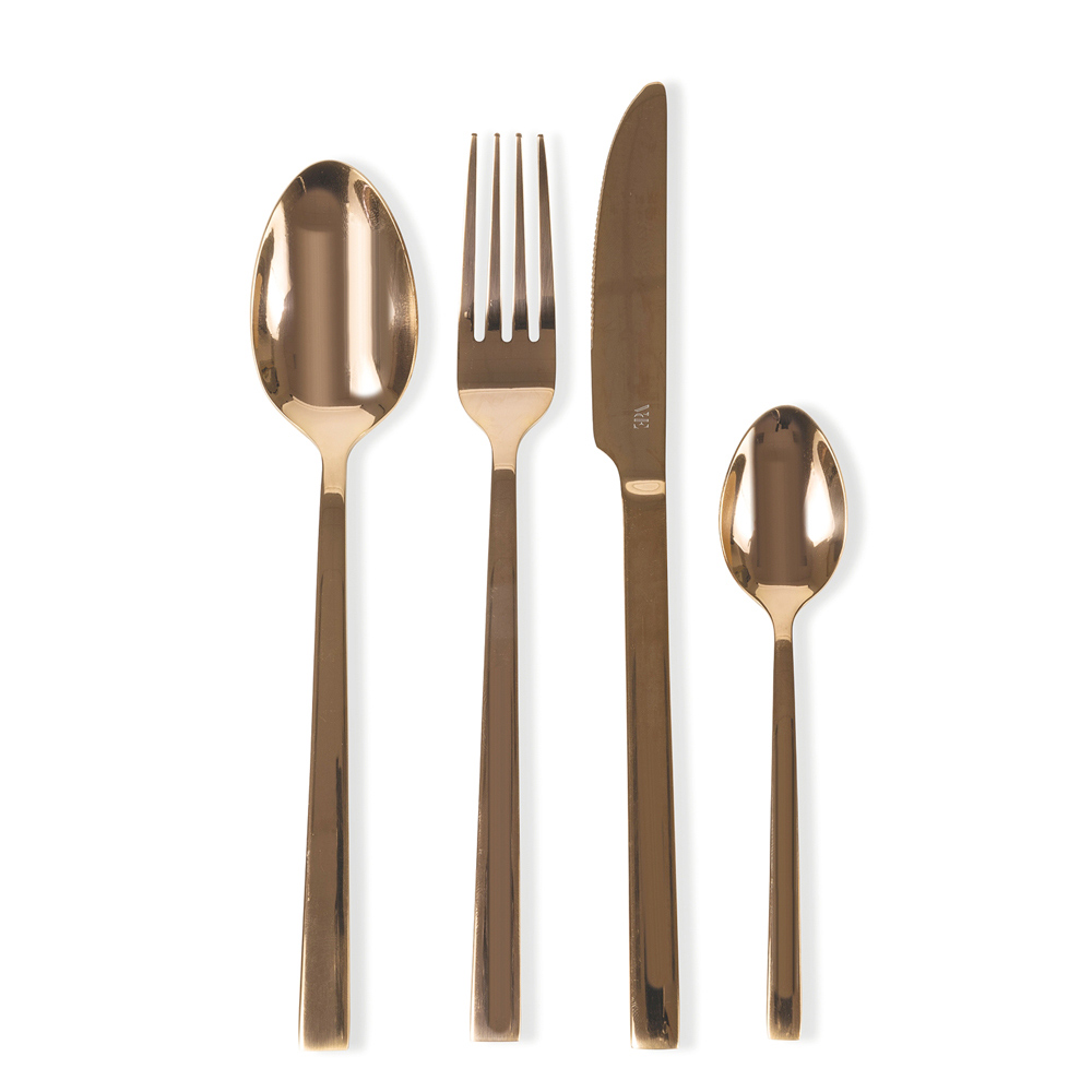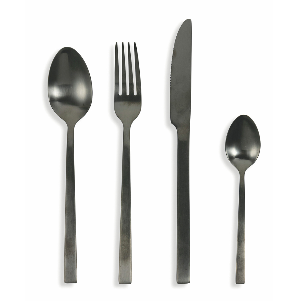 Design-Besteck-Set in Kupferstahl glänzend oder matt oder schwarz, 24 teilig.