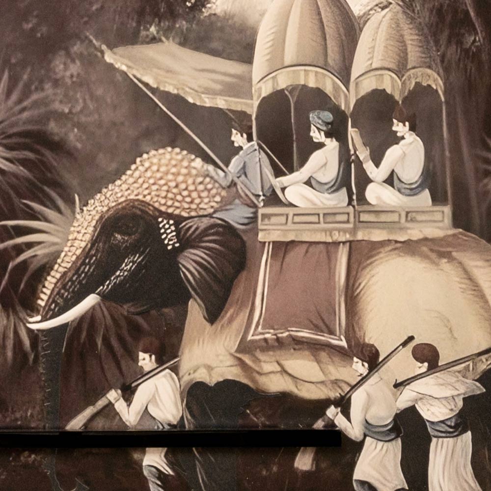 Komposition ausHolzplatten mit einem Aufdruck einer exotischen Umgebung mit einem Elefanten und 2 schwarzen Plexiglasplatten im Relief. Mit diesem Gemälde möchten wir dem Raum eine exotische und tropische Atmosphäre verleihen, dank des Drucks eines Elefanten mit Baldachin und des umliegenden Waldes, der die Komposition perfekt macht, um die Einrichtung jedes Raumes zu vervollständigen. Es wurde vollständig in Italien mit der Auswahl der besten Materialien und mit Sorgfalt und Aufmerksamkeit in jedem einzelnen Produktionsprozess hergestellt.