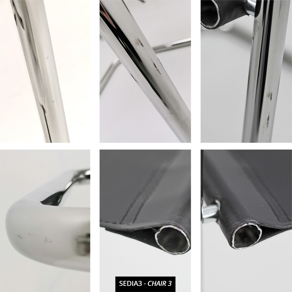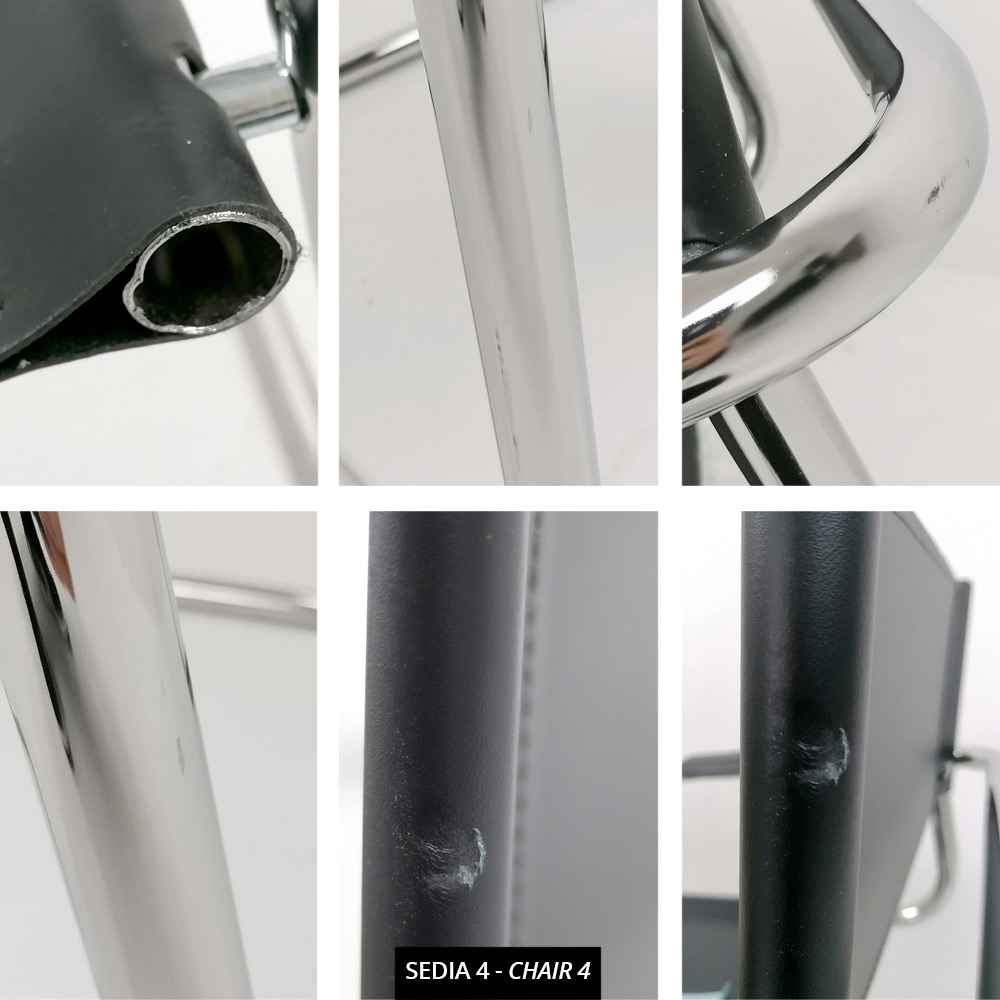 Moderner Besprechungs- oder Konferenzraumstuhl aus verchromtem Metall und schwarzem Kunstleder.