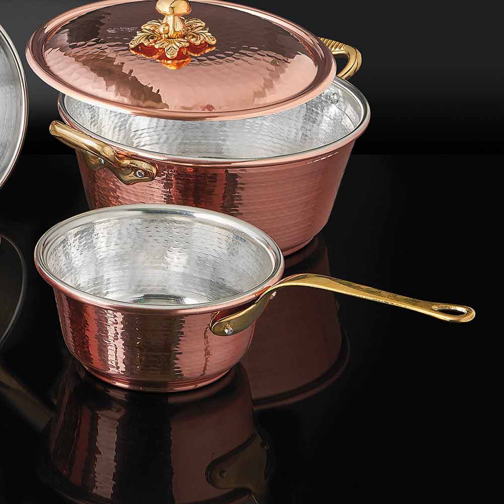 praktisch unzerstörbares Edelmetall mit einem hohen ökologischen Wert. Deshalb kann der Besitz eines Küchengeräts aus Kupfer bedeuten, ein Stück Menschheitsgeschichte zu besitzen, das Freude und Charme bei der Zubereitung von Speisen und der Präsentation von Speisen mit sich bringt.
