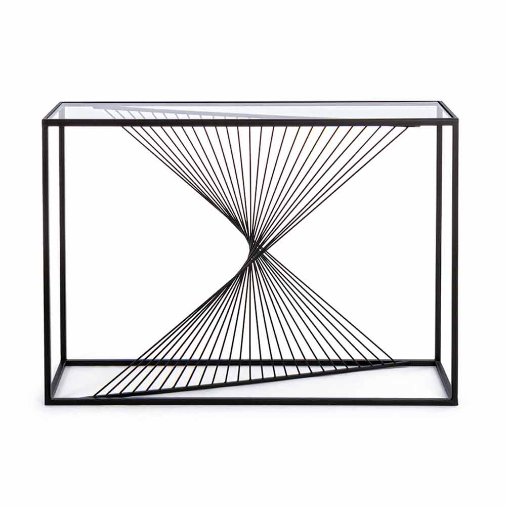 Moderne rechteckige Konsole aus Stahl und Glas mit Formenspiel.