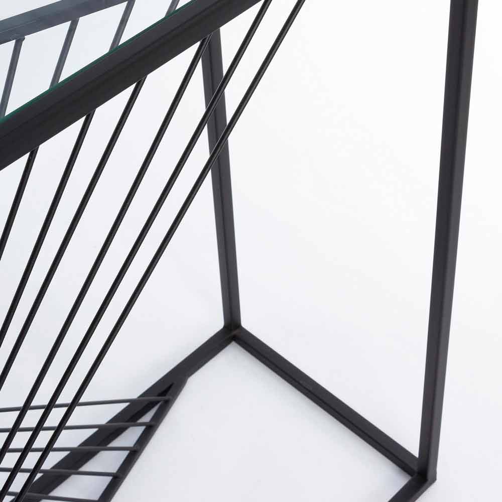 Diese Designkonsole hat eine minimale rechteckige Struktur aus epoxidpulverbeschichtetem Stahl und eine Platte aus gehärtetem Glas . Die Besonderheit besteht im ursprünglichen Formenspiel , das sich von der Basis bis zur Oberseite erstreckt und einen dynamischen und kreativen visuellen Effekt erzeugt . Das Ergebnis ist ein Kunstwerk mit starkem Ziercharakter, das die Umgebung mit zeitgemäßem Stil und Geschmack schmücken kann.