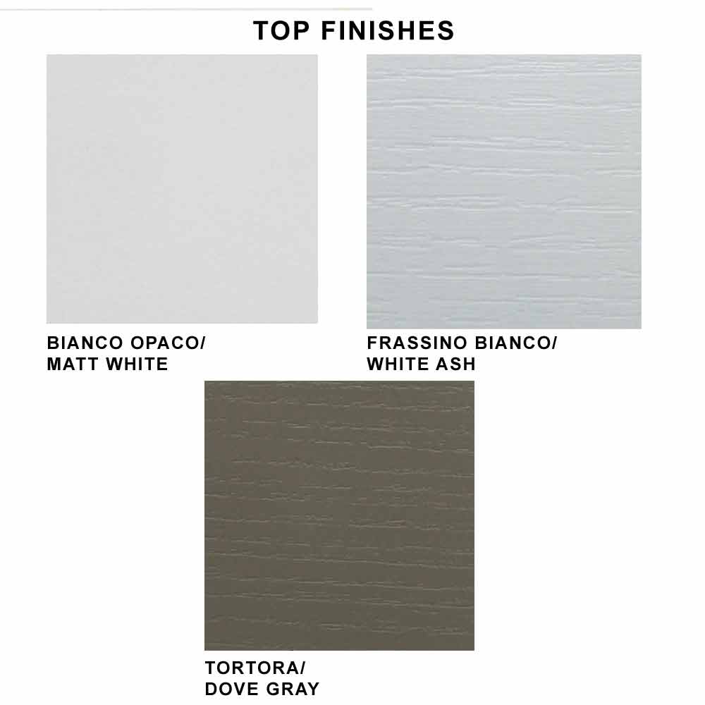 weiß oder graphitlackiertem Stahl. Verfügbare Ausführungen für die Oberseite:- Platte aus mattweiß lackiertem Melamin;