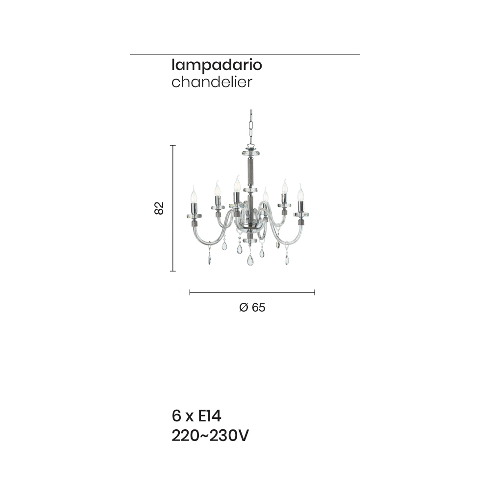 | Anschlusstyp und elektrische Leistung | 6 x E14 220–230 V |