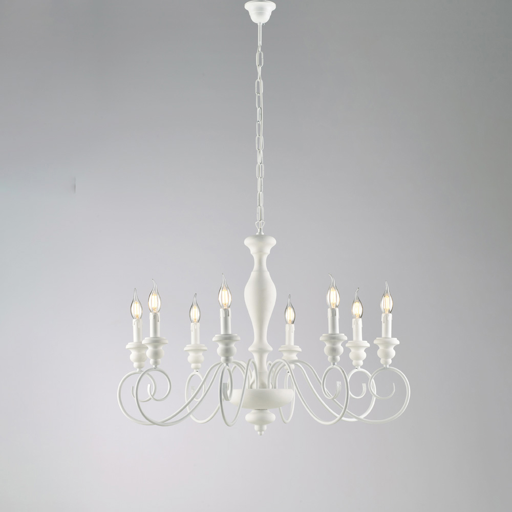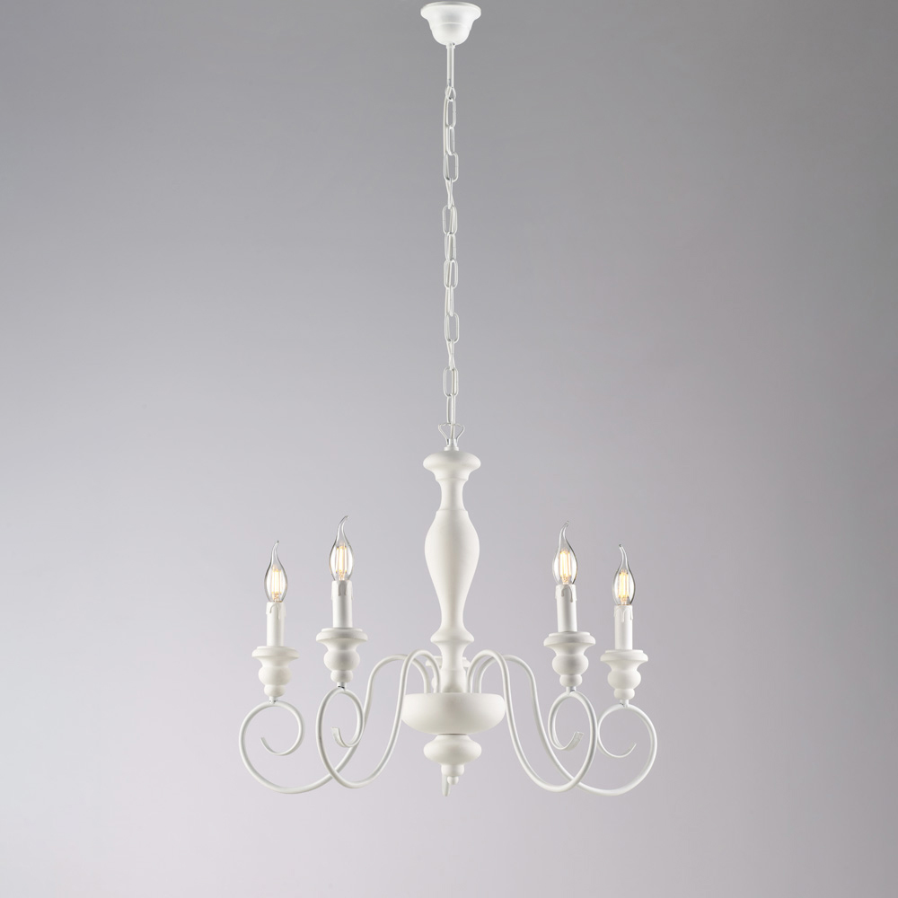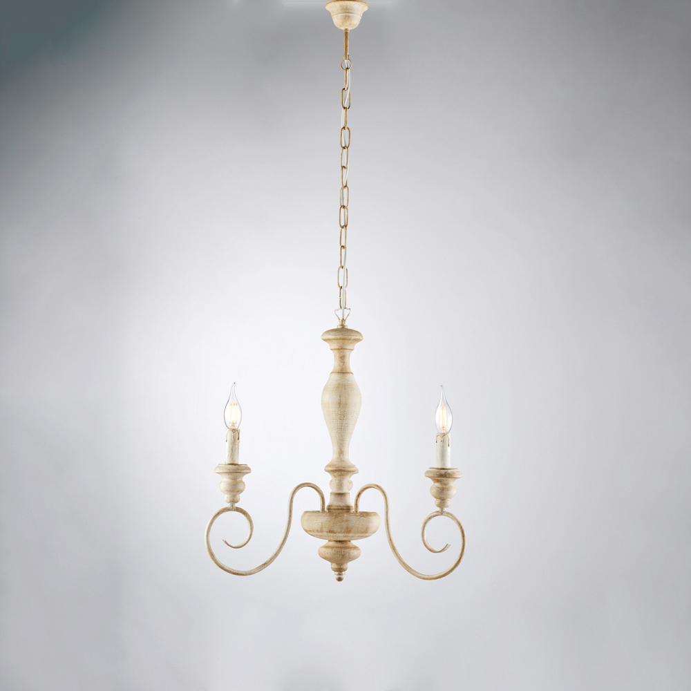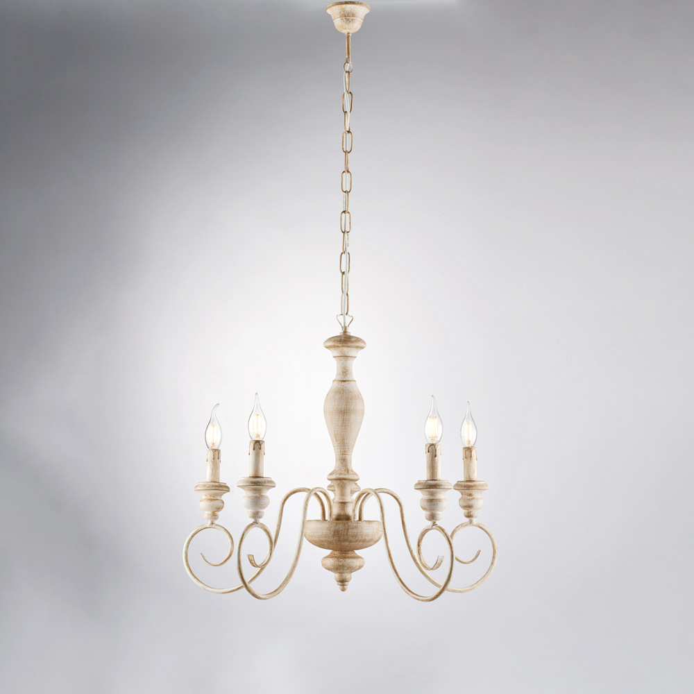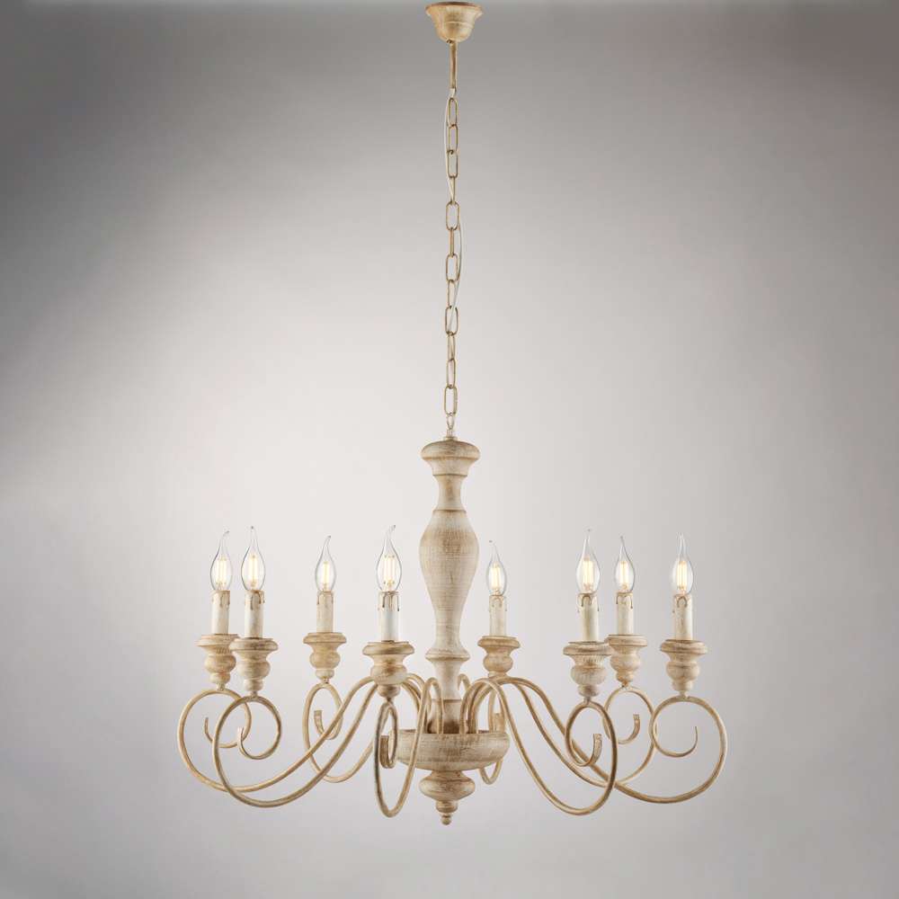 Elegant und zeitlos – dieser klassische Kronleuchter aus Holz und Eisen ist ein leuchtendes Schmuckstück, das den Charme des Shabby-Chic -Stils auf raffinierte Weise neu interpretiert. Die schlanke Struktur mit geschwungenen Armen und kerzenförmigen Leuchten verleiht dem Raum Leichtigkeit und Harmonie und schafft eine warme, einladende Atmosphäre.