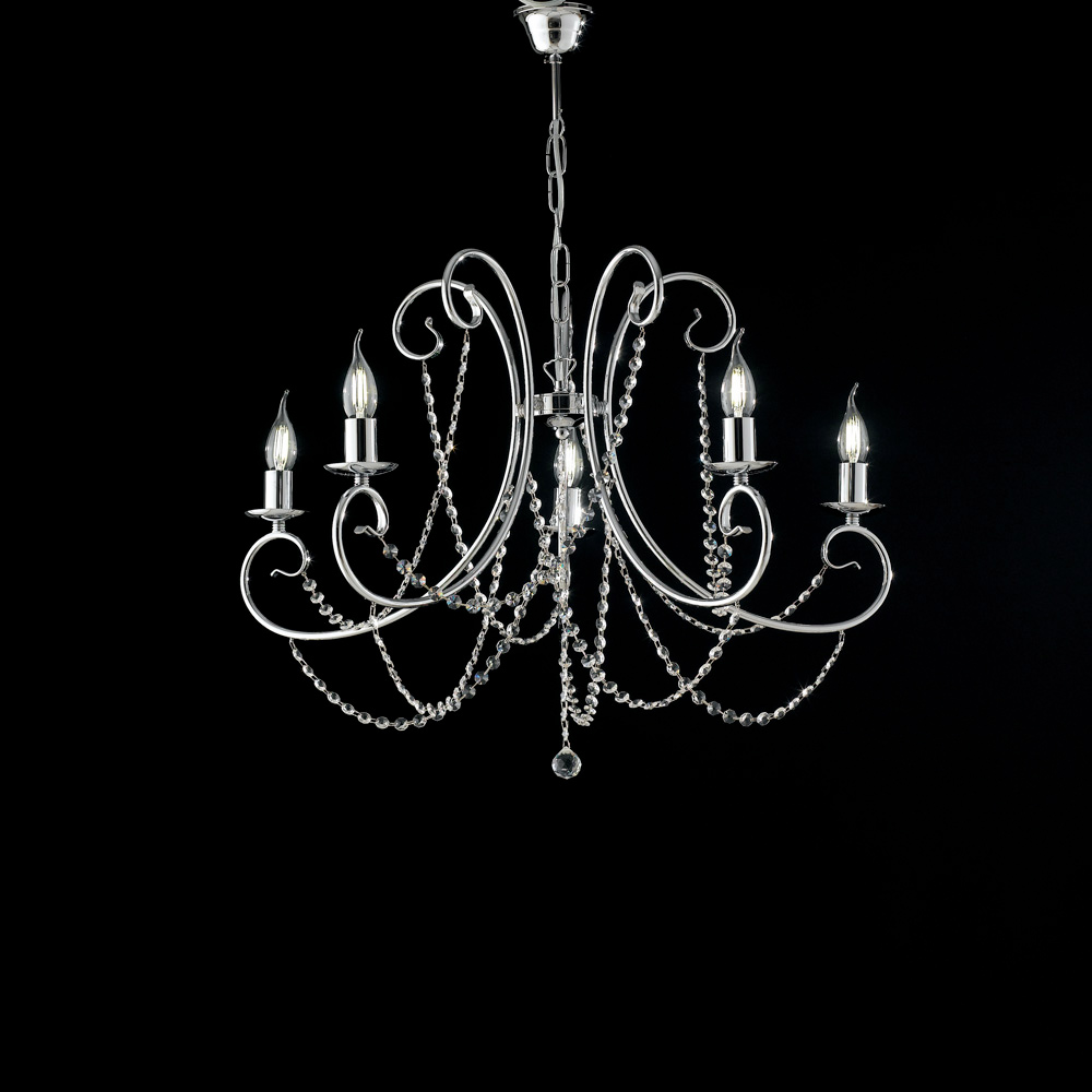 Dieser klassische Kronleuchter aus Eisen ist eine Ikone zeitloser Eleganz und besticht auf den ersten Blick durch seine geschwungenen Linien , die fein gearbeiteten Arme und die Kaskaden dekorativer Kristalle , die das Licht mit raffinierter Brillanz reflektieren.