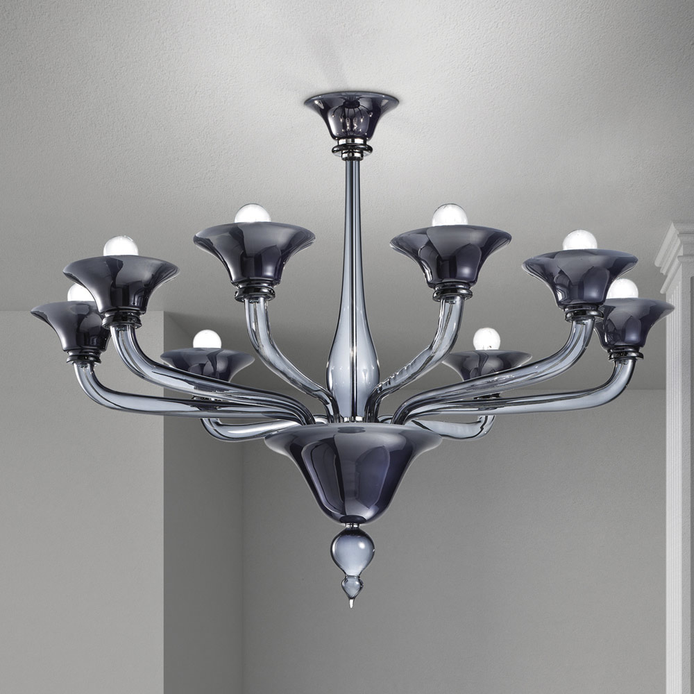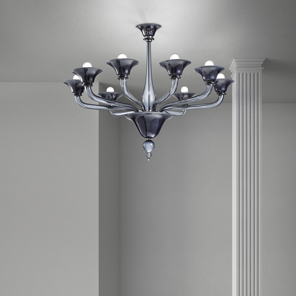 Kronleuchter mit 8 Lichtern aus venezianischem Glas und Metall Made in Italy.