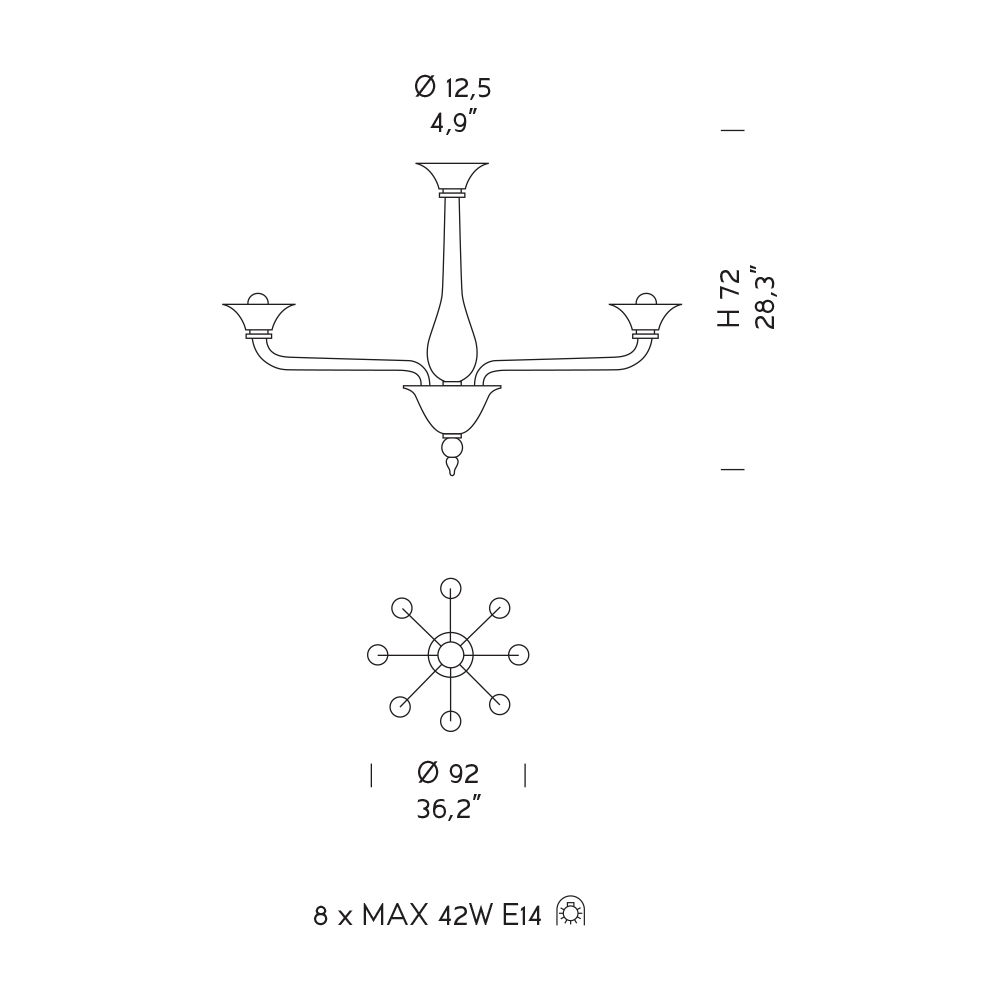Leuchtmittel (nicht enthalten) : 8 x MAX 42W E14