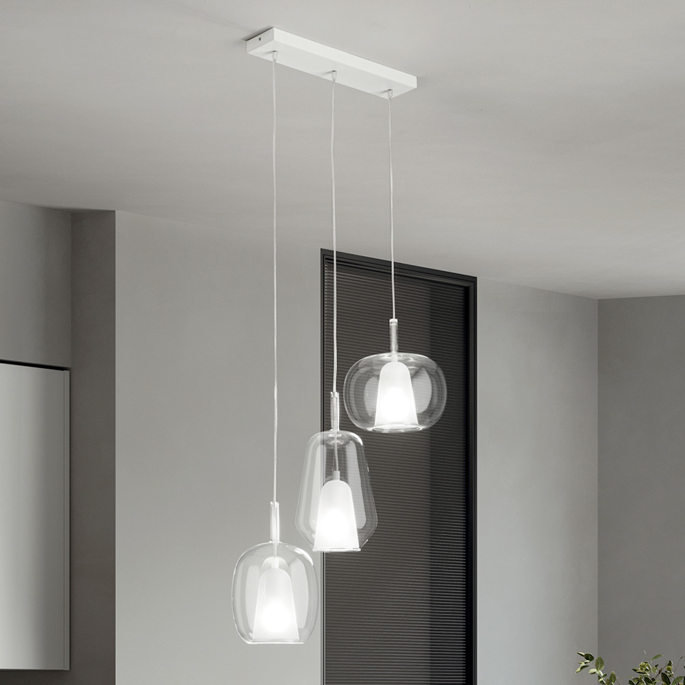Entdecken Sie den Charme anspruchsvoller Beleuchtung mit diesem Kronleuchter, der jedem Raum Eleganz und Wärme verleiht . Die an einem dünnen Draht aufgehängten Diffusoren sind in verschiedenen Ausführungen erhältlich und reflektieren ein einladendes und einladendes Licht, das die Umgebung mit einem Hauch raffinierter Modernität bereichert.