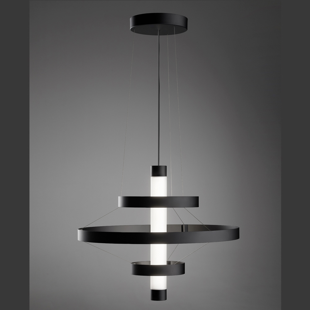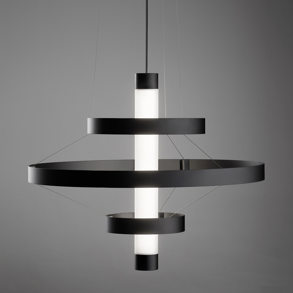 Diese Pendelleuchte ist ein echter Protagonist in jedem Raum: eine leuchtende Skulptur, die den Blick auf sich zieht und der Umgebung Persönlichkeit und Prestige verleiht. Die Struktur besteht aus einer Reihe konzentrischer Aluminiumringe , die harmonisch um den zentralen Körper angeordnet sind und einen dynamischen, eleganten und dreidimensionalen visuellen Effekt erzeugen.