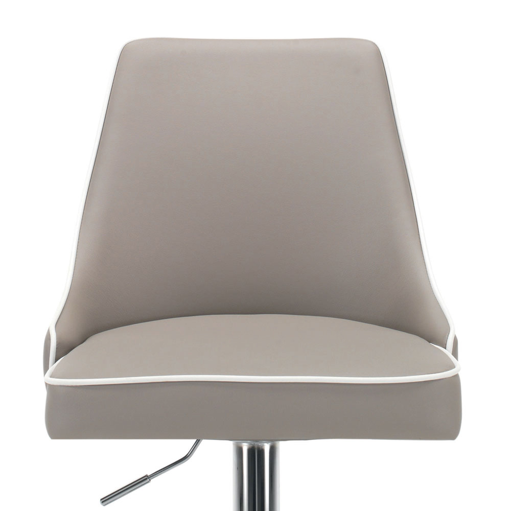 Komplett in Italien hergestellter Küchenhocker mit Stahlgestell , komplett mit Öko-Leder bezogen, mit kontrastierender Kante und verchromtem Stahlgestell, ausgestattet mit Gasdruckfeder und praktischer Fußstütze . Ein Produkt, das Design und Schlichtheit vereint, Eigenschaften, die zusammen mit den wertvollen Materialien, die für seine Herstellung ausgewählt wurden, ein vielseitiges und funktionales Einrichtungsaccessoire zum Leben erwecken, das sich ideal dazu eignet, jeden Wohnraum mit zeitgenössischer Ästhetik mit Persönlichkeit und Charakter zu vervollständigen. Das Ergebnis ist ein bequemer und einladender Sitz, der dank seiner originellen Form und den wunderbaren Farben mit kontrastierenden Paspeln, die den Hocker zusätzlich mit Prestige und Wert bereichern, der Umgebung eine exklusive Note verleiht.