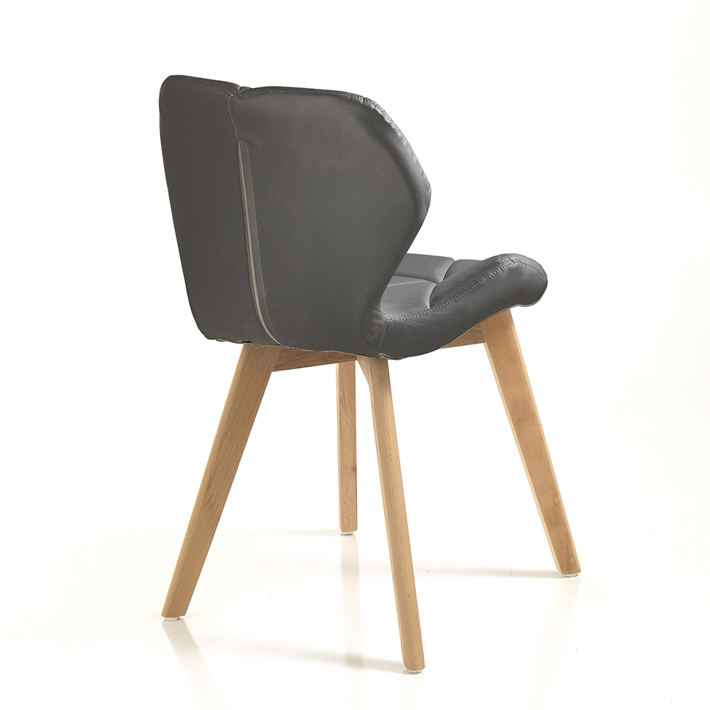 Moderner Esszimmerstuhl aus Holz mit 2-teiligem Kunstlederbezug.
