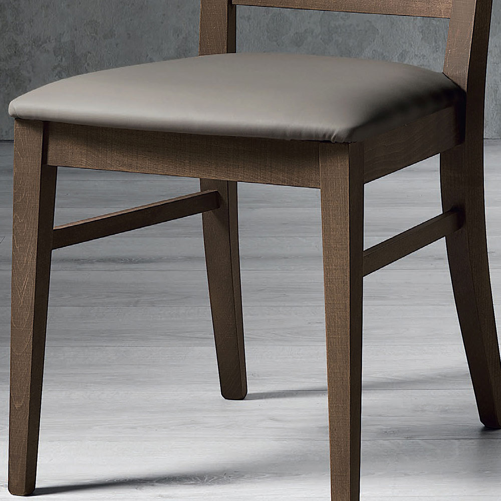 Küchenstuhl in modernem Design aus Holz und Kunstleder, hergestellt in Italien.