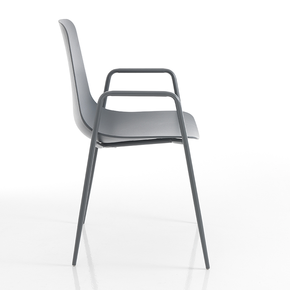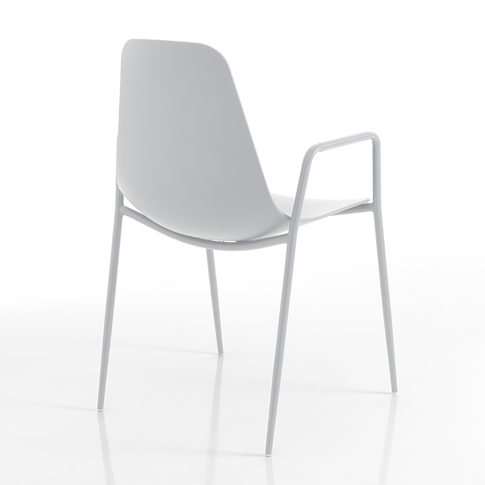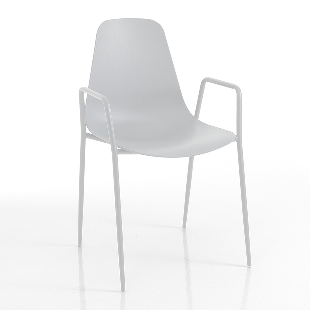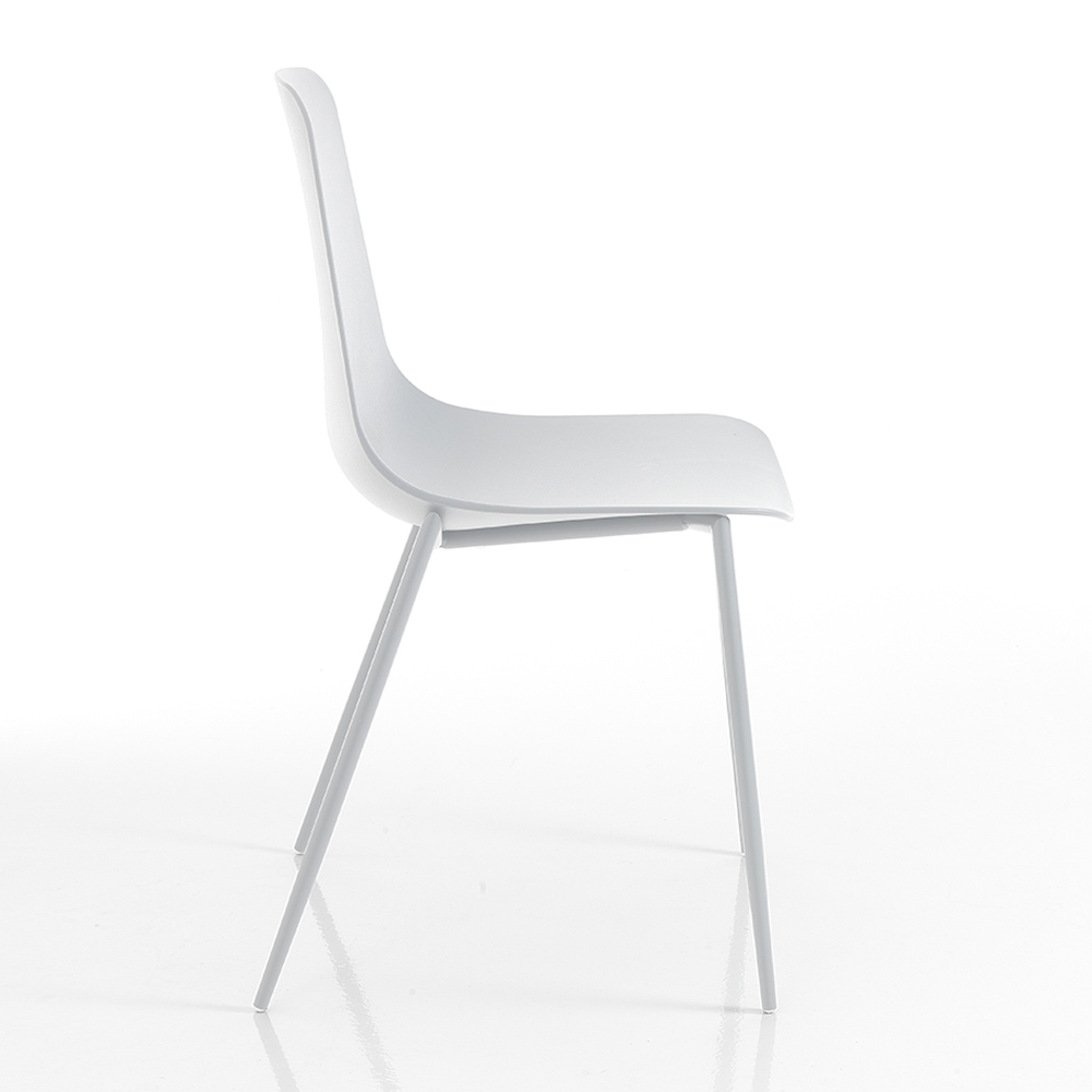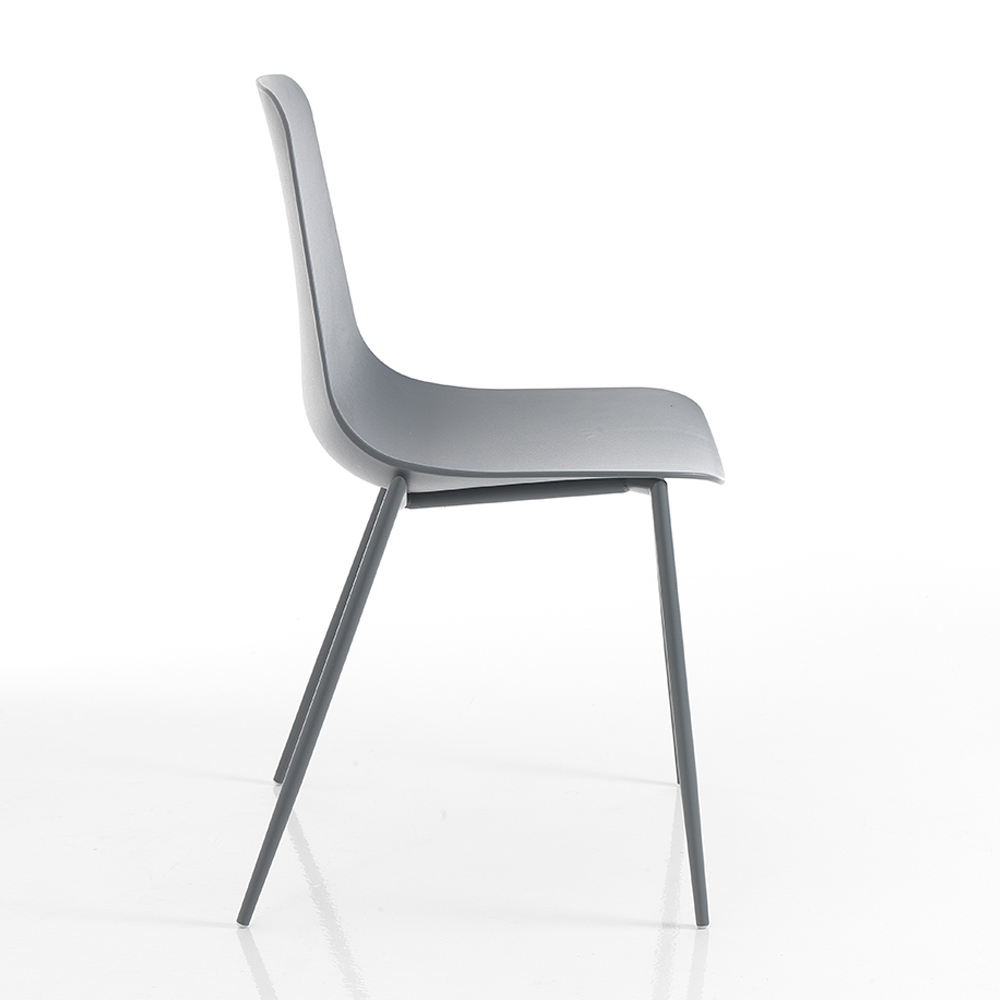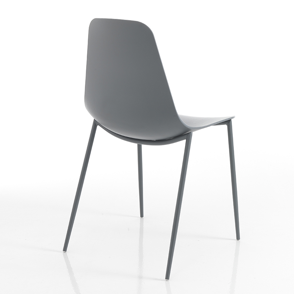 Küchenstuhl aus opakem Polypropylen mit Stahlbeinen mit Schutzlack für die Außenseite beschichtet. Eine Ergänzung mit einem essentiellen Design für diejenigen, die nach einfachen Elementen suchen, um die Einrichtung ihrer Wohnräume zu vervollständigen. Seine Ästhetik ist geprägt von vielseitigen Formen und Linien , die es perfekt machen, um einen einladenden, komfortablen und gleichzeitig modernen und minimalistischen Sitz zu bieten.