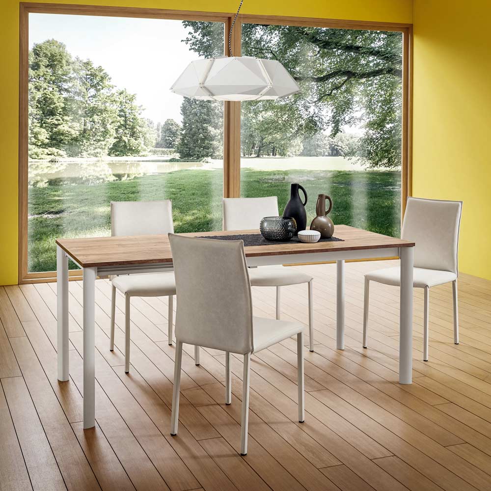 Stuhl für Esszimmer oder Küche , hergestellt in Italien, mit Metallstruktur, die vollständig mit Kunstleder mit Schaumstoffpolsterung bezogen ist. Der Stuhl stellt nicht nur wegen seiner Funktionalität, sondern vor allem wegen seines ästhetischen Werts immer mehr ein grundlegendes Element in der häuslichen Umgebung dar, das für die Schaffung einer perfekten Harmonie mit den umgebenden Einrichtungselementen unerlässlich ist. Diese Ergänzung schafft es, beide Rollen gleichzeitig abzudecken, indem sie ein Design mit minimalen, weichen und klaren Linien bietet, das sich mit dem hervorragenden Komfort des gepolsterten Sitzes zu einem hochwertigen Ergebnis verbindet, das eine einladende Atmosphäre und einen einfachen Luxus zum Leben erweckt Stil . Darüber hinaus wird es dank der wunderbaren verfügbaren Farben möglich sein, die perfekte Lösung zu finden, um allen Bedürfnissen am besten gerecht zu werden und jeden Wohnbereich mit einer exklusiven und raffinierten Note zu vervollständigen und zu bereichern.