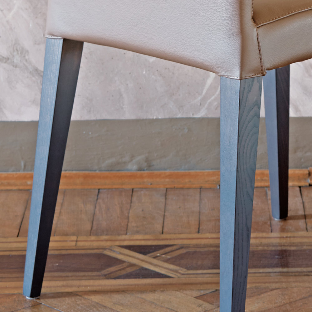 Esszimmerstuhl , vollständig in Italien hergestellt, mit Sitzbezug aus Leder in Sand- Finish und Struktur aus grau gebeizter Esche . Dank seiner einfachen und weichen Oberflächen ist es eine perfekte Idee für alle, die ihr Wohnzimmer, Esszimmer und ihre Küche gerne mit Geschmack und Stil einrichten möchten, ohne auf Funktionalität und Komfort zu verzichten.