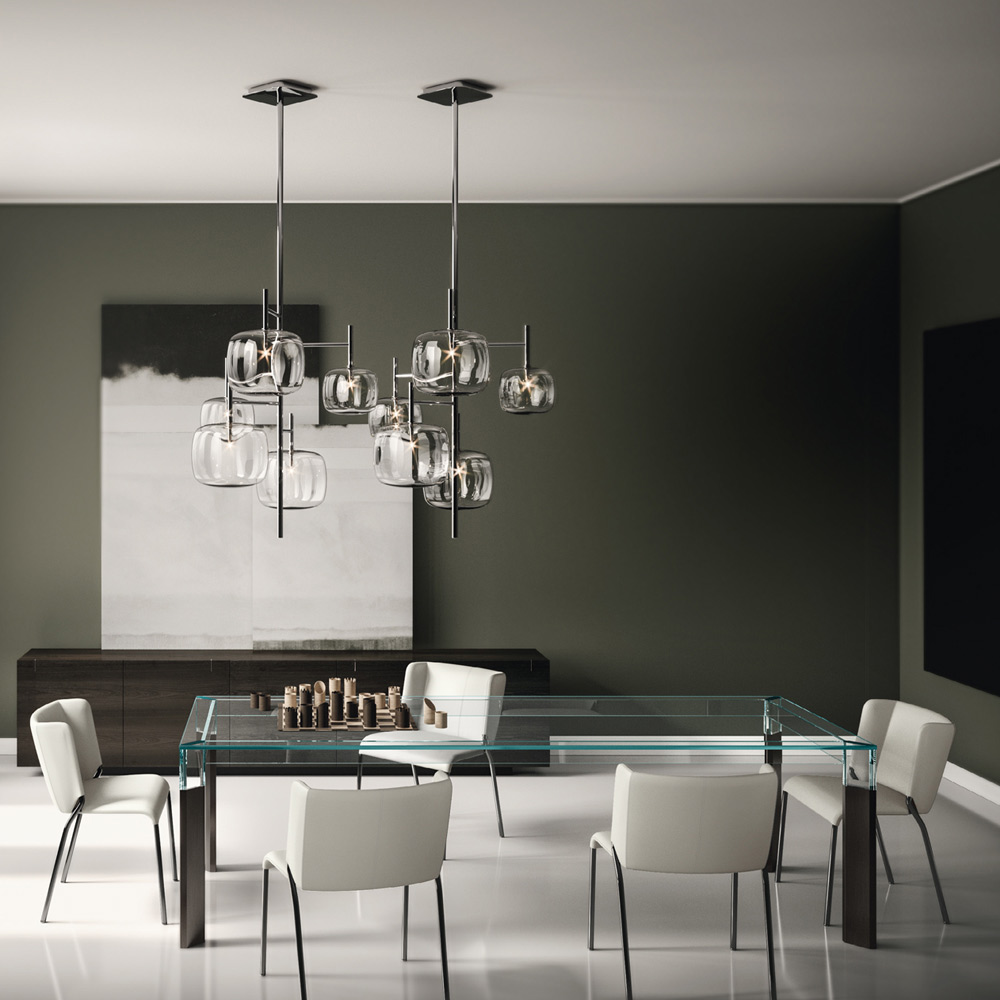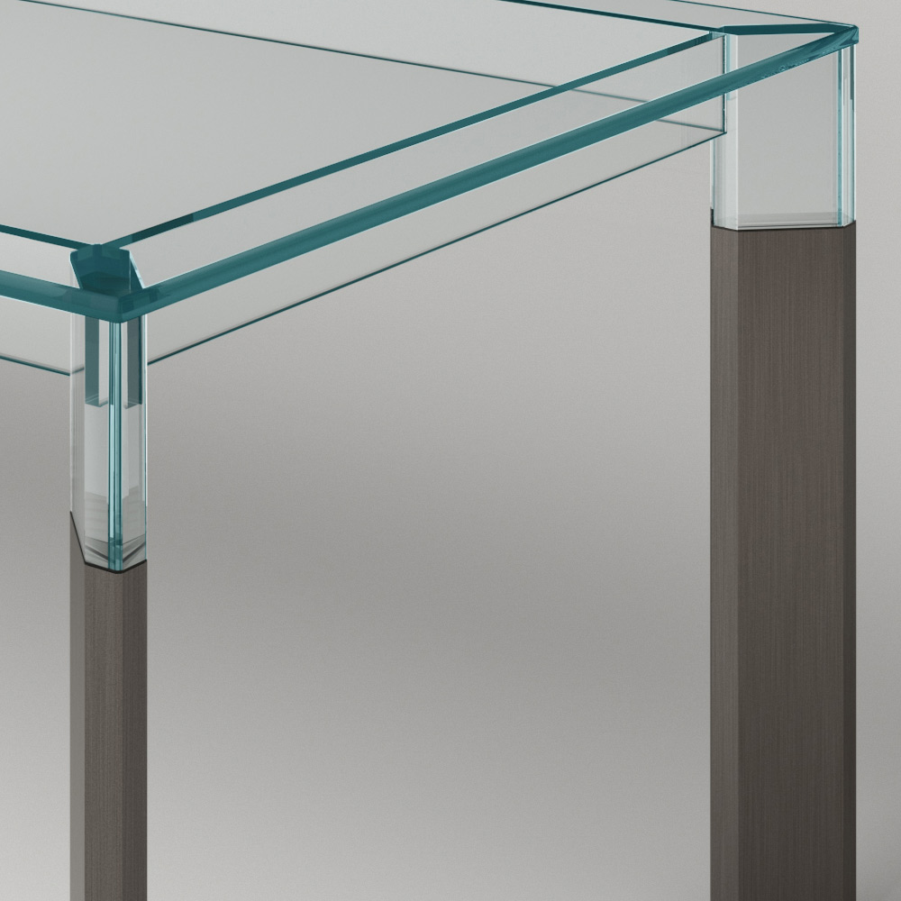 Esstisch komplett in Italien hergestellt mit Glasplatte und Beinen aus Glas und Massivholz . Eine zeitlose Einrichtungslösung, die für verschiedene Stilrichtungen geeignet ist und die perfekte Verbindung zwischen der Eleganz von Glas und der Erhabenheit von Holz unterstreicht und ihre Vielseitigkeit im Wohnbereich begünstigt. Ein großer Protagonist des Wohnbereichs, der sich durch komplexe Konstruktionstechniken auszeichnet, die von erfahrenen italienischen Handwerkern verwendet werden , um einen hochwertigen und besonders funktionalen Esstisch zu schaffen. Das Ergebnis ist eine Harmonie aus einfachen Linien und Formen , die die perfekte Idee schaffen, Esszimmer oder Küchen mit einem zeitgenössischen Stil exklusiv und raffiniert einzurichten, den Mittelpunkt der Aufmerksamkeit zu erobern und Momente in Gesellschaft einzigartig zu machen.