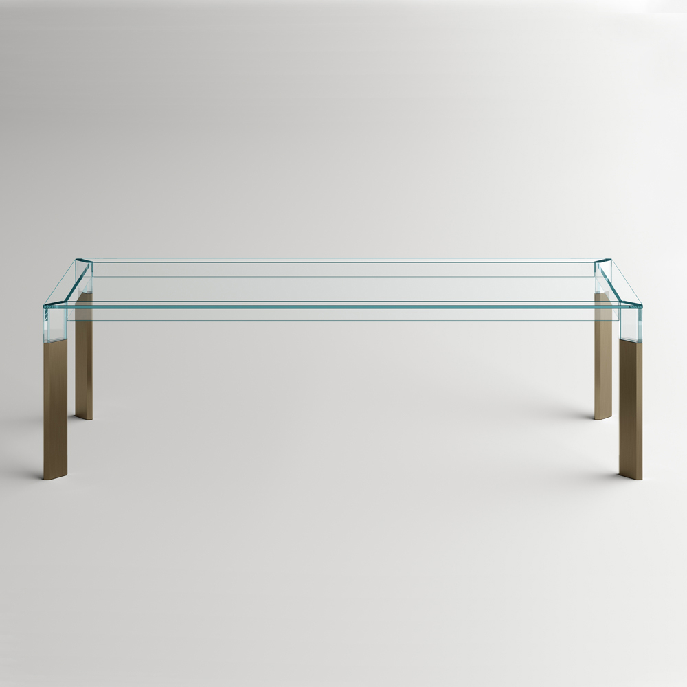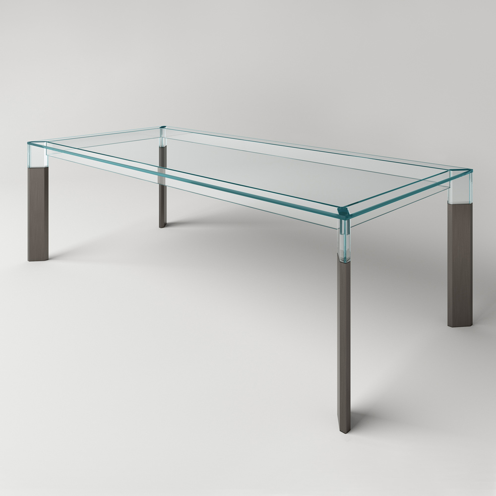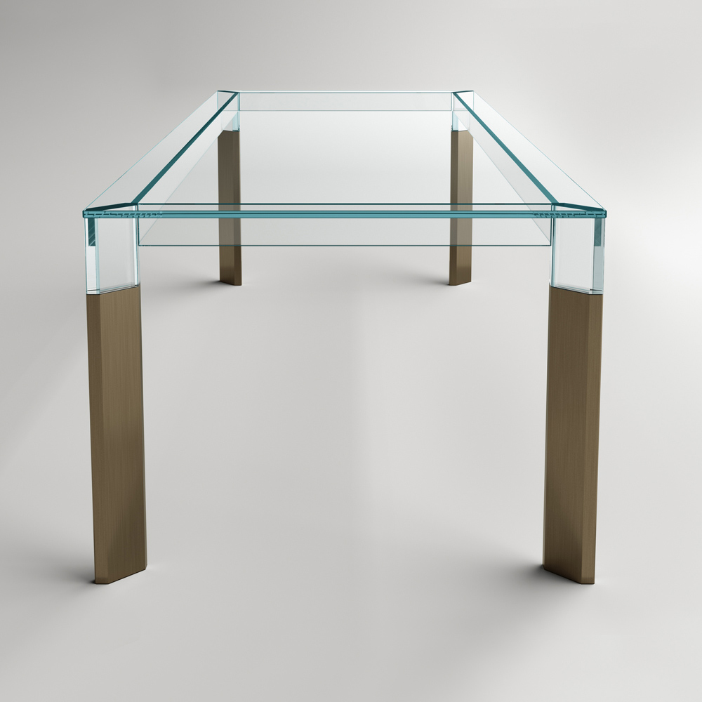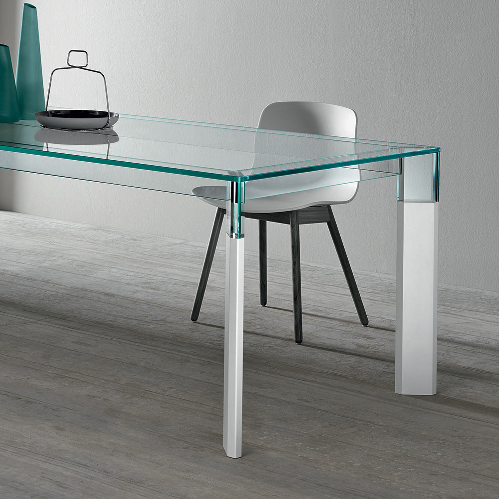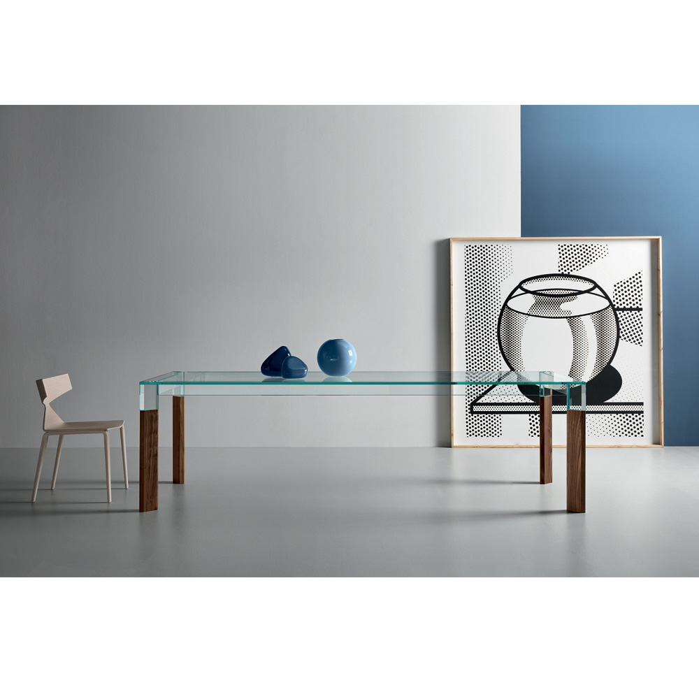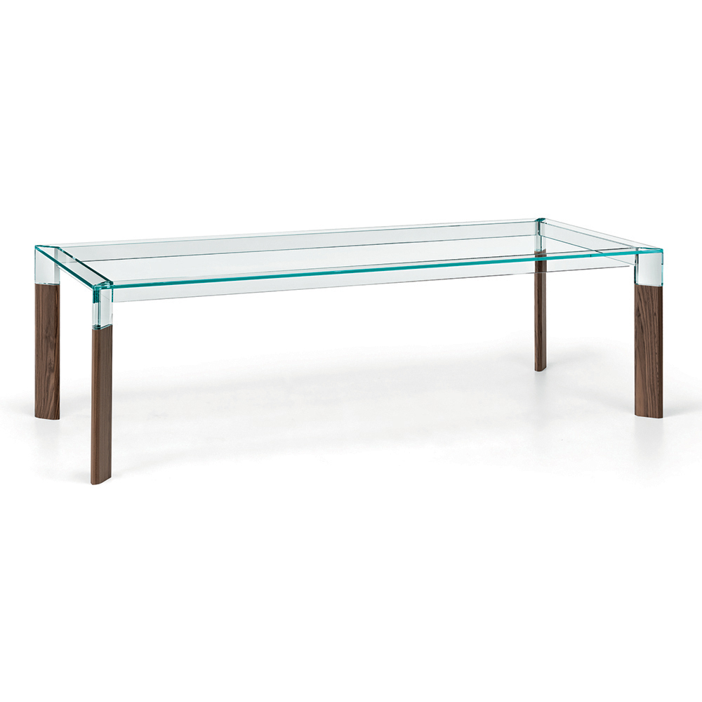Küchentisch aus extra klarem Glas mit Holzbeinen Made in Italy - Super
