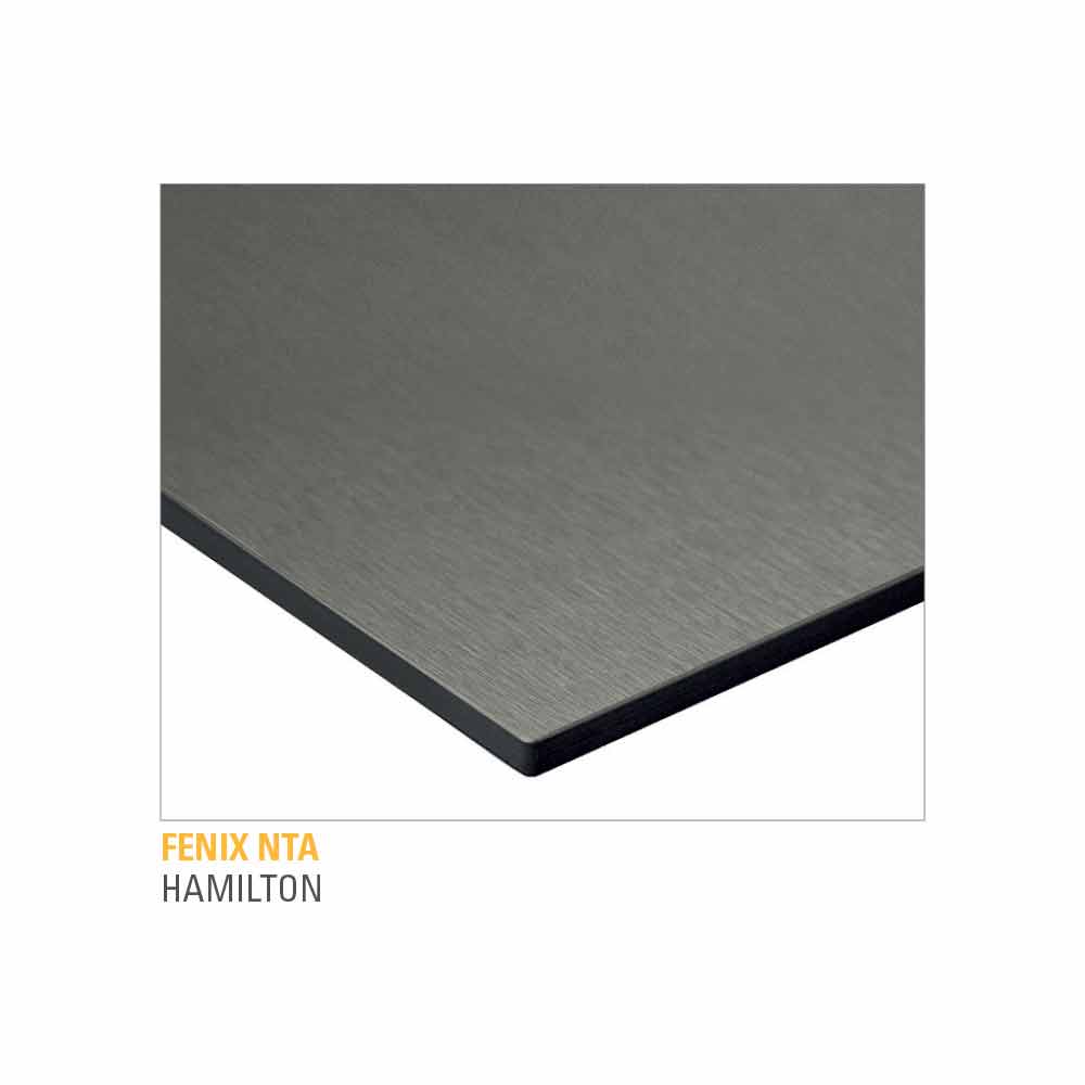 Küchentisch mit laminierter Fenix- Platte (Stärke 10 mm), ausgestattet mit MDF-Träger (Stärke 22 mm) und Beinen aus schwarz eloxiertem gebürstetem Aluminium . Dieses zu 100 % in Italien hergestellte Zubehör hat ein Design, das von einfachen Linien und essentiellen Formen geprägt ist, die dank der wunderschönen und diskreten Oberflächen eine äußerst vielseitige Einrichtungslösung zum Leben erwecken. Seine Ästhetik konzentriert sich ganz auf einen funktionalen und modernen Stil , grundlegende Eigenschaften, um eine exklusive Harmonie im Raum zu schaffen. Auf optischer Ebene ist seine Besonderheit die geschichtete Fenix- Platte, ein Material, das sich durch eine Behandlung mit Harzen der neuen Generation auszeichnet, die eine besonders widerstandsfähige , angenehm anzufassende und extrem undurchsichtige Oberfläche bietet. Elemente, die nicht nur die funktionale Seite des Tisches erhöhen, sondern auch seine raffinierte Ästhetik unterstreichen und vervollständigen und ihm eine exklusive und elegante Note verleihen.