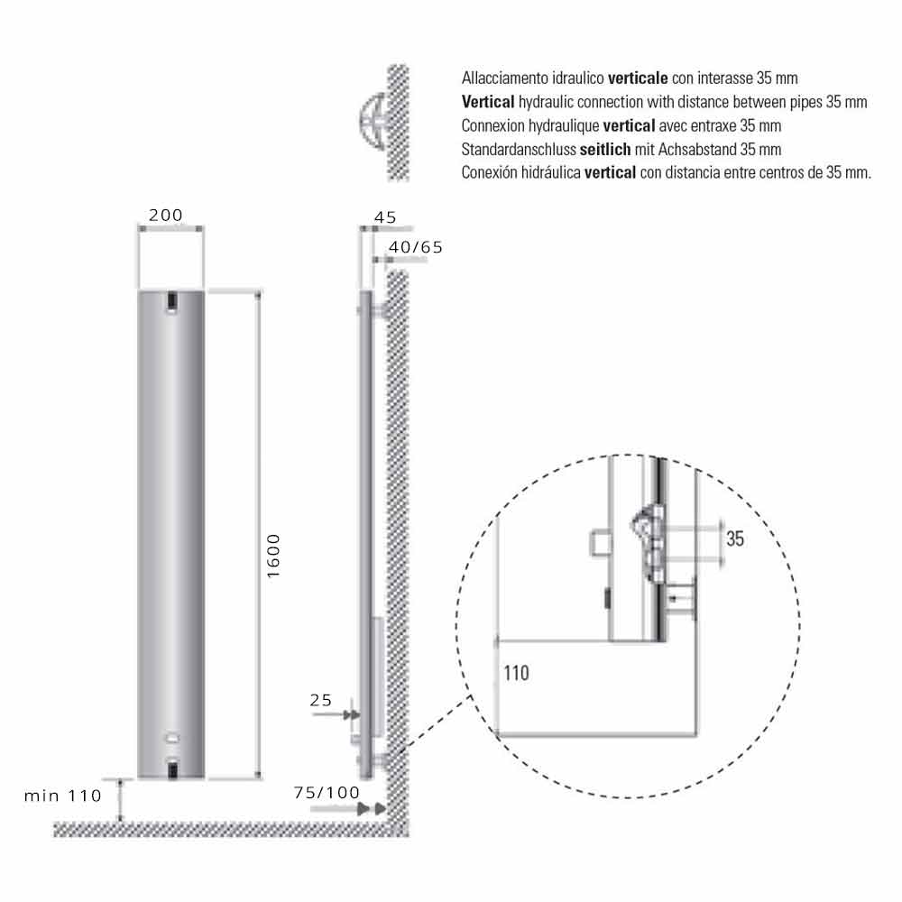 NB: Die Ventile und der Halter sind ausgeschlossen, um sie zu erhalten, schreiben Sie uns in das Formular "Informationen anfordern". Auf Anfrage auch der Kleiderbügel aus satiniertem Edelstahl erhältlich, nicht im Preis inbegriffen.