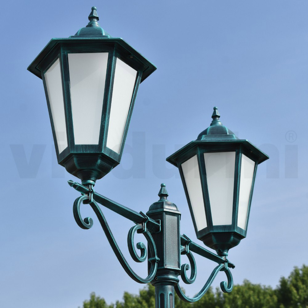2-flammige Straßenlaterne aus Aluminium im Vintage-Stil mit Glasdiffusor, hergestellt in Italien.