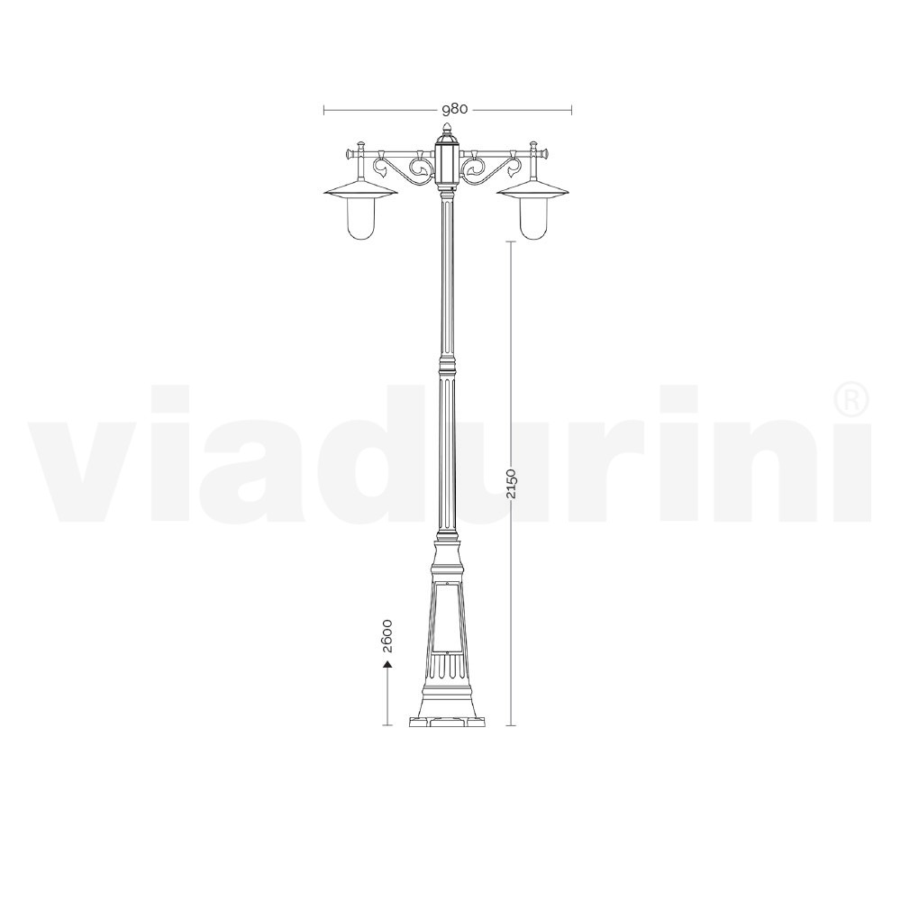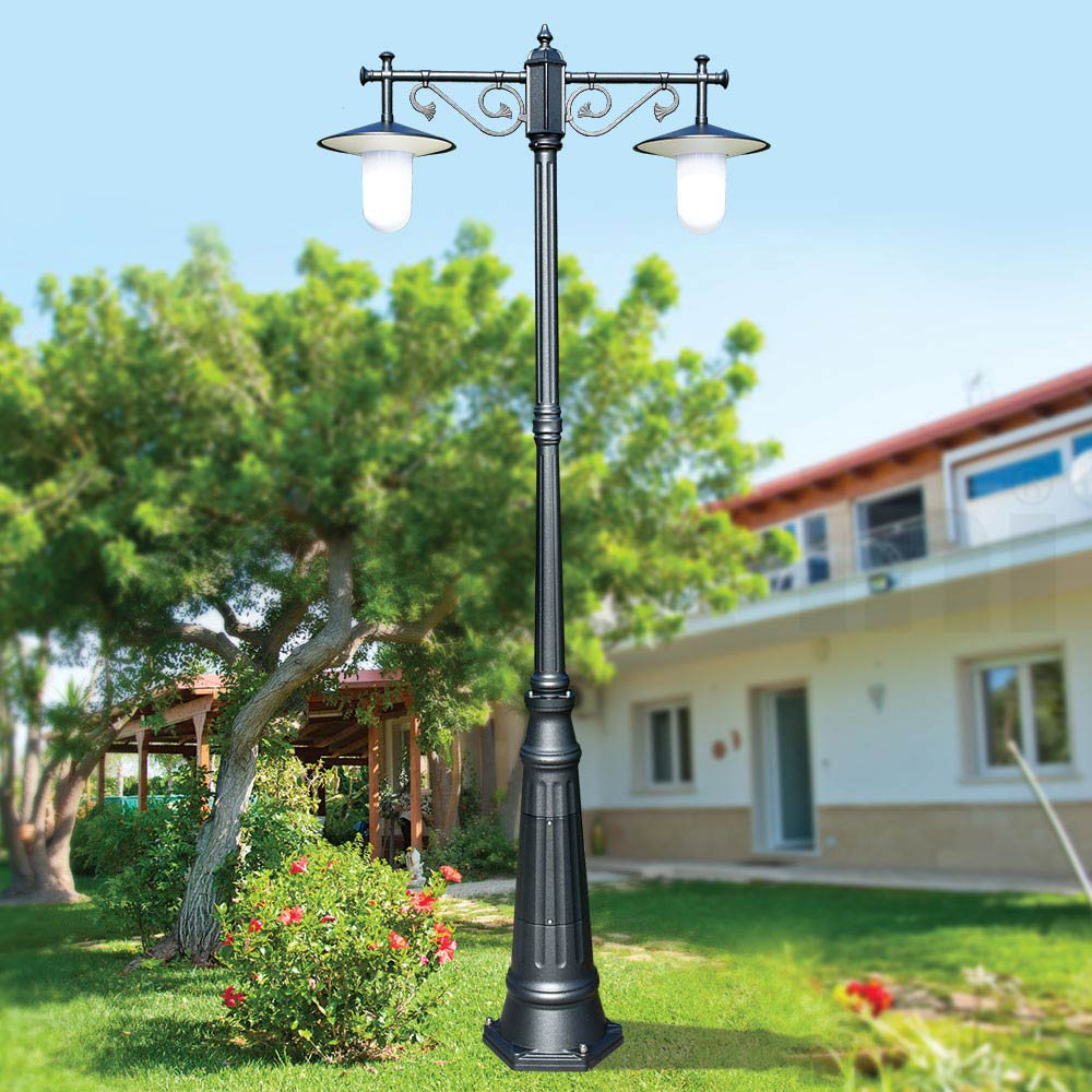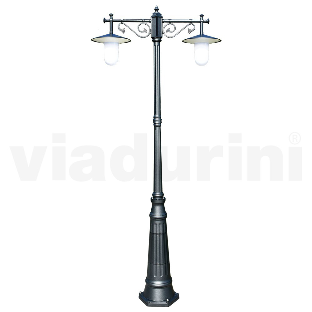 Laternenpfahl 2 Lichter im Vintage-Stil aus grauem Aluminium, hergestellt in Italien – Belen