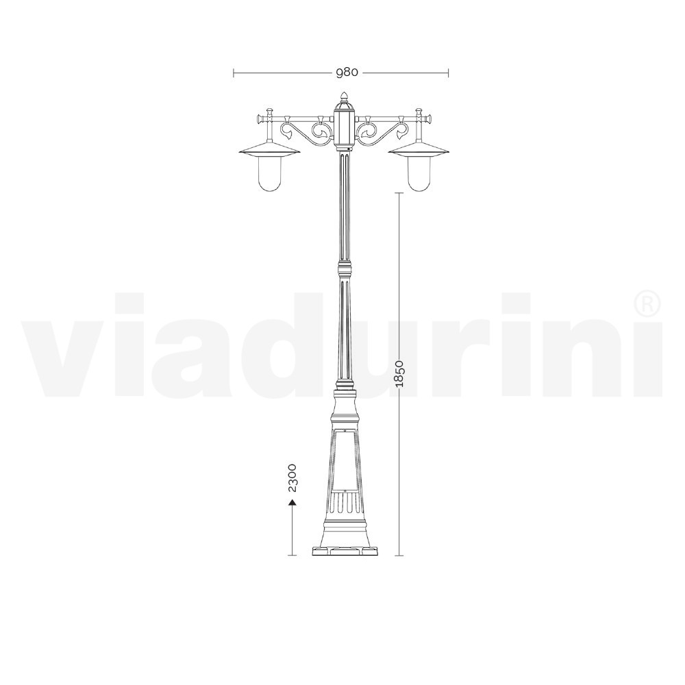 2-flammiger Laternenpfahl im Vintage-Stil aus Aluminium und Polycarbonat, hergestellt in Italien.