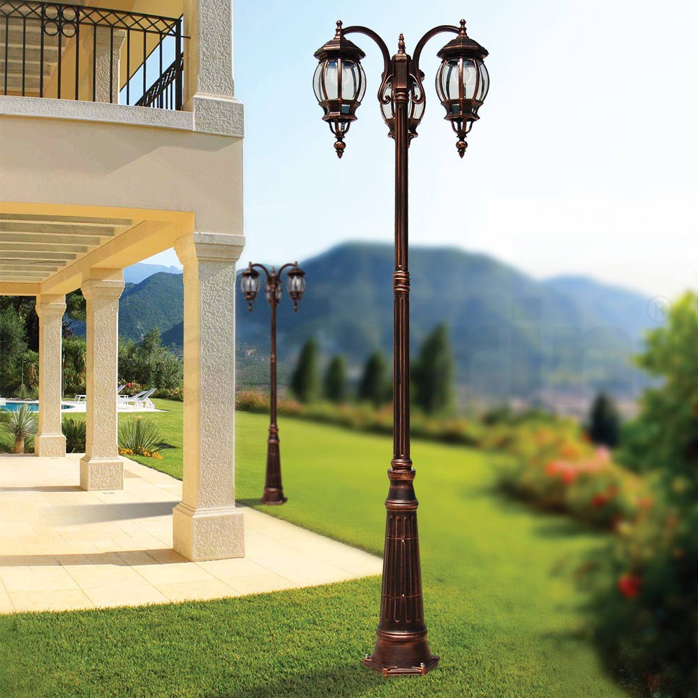 Laternenpfahl mit 3 Lichtern im Vintage-Stil aus Aluminium, hergestellt in Italien – Leona