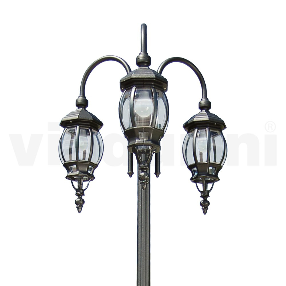 3-flammige Straßenlaterne im Vintage-Stil aus anthrazitfarbenem Aluminium und Polycarbonat, Made in Italy.