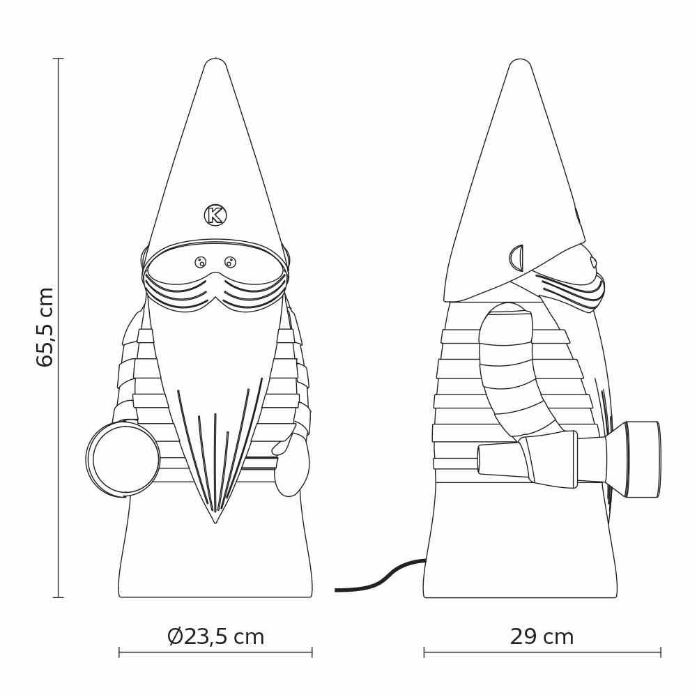 Diese originelle und einzigartige Stehleuchte im Freien möchte mit ihrer witzigen und lustigen Form, die den achten Zwerg von Schneewittchen darstellt, unterhalten. Es ist eine ironische Ergänzung in Gardo, die inneren und äußeren Umgebungen mit Geschmack und Stil für ein Maximum an Zeitgenossenschaft und einen Hauch von Einzigartigkeit zu charakterisieren.