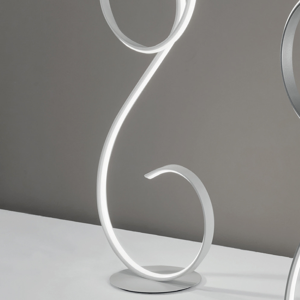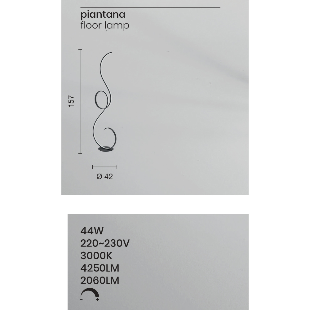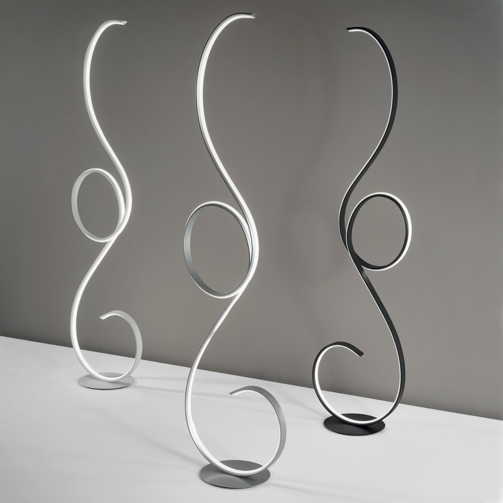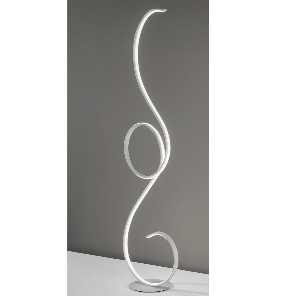 Stehleuchte aus lackiertem Metall mit integrierter dimmbarer LED-Quelle. Ein ultramodernes Design, das von geschwungenen und eleganten Linien unterbrochen wird, die dieses Möbelstück in seiner Art einzigartig machen und sich besonders für eine Einrichtung mit Persönlichkeit eignen, die der Umgebung eine originelle und avantgardistische Note verleiht. Seine Besonderheit ist die hochwertige Beleuchtung, die dank des in der Struktur eingeschlossenen LED-Streifens durch die gesamte Struktur verläuft und dank der 4400 Lumen in 3000k warmweißer Farbe perfekt für eine hervorragende Lichtleistung geeignet ist . Ideal, um die Ästhetik Ihres Wohn- oder Schlafzimmers zu vervollständigen, dank seines Pedaldimmers an der Stromversorgungsleitung lässt es sich leicht an Ihre Helligkeitsbedürfnisse anpassen, um ein optimales Ergebnis zu erzielen.