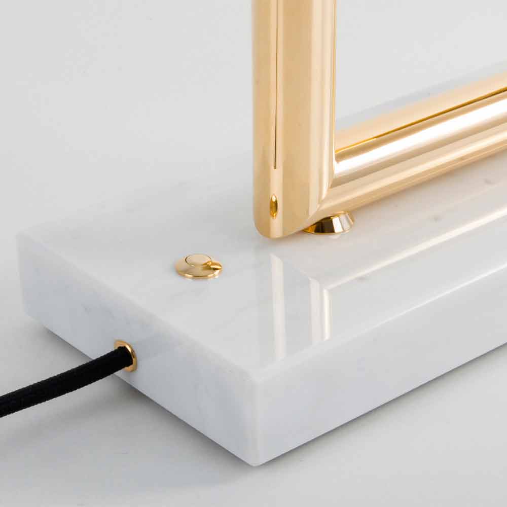 Tischlampe made in Italy mit polierter Messingstruktur , Acrylharz- Diffusor und Marmorsockel komplett mit schwarzem Stoffstromkabel, Netzschalter mit Lichtintensitätsregler und integrierten LED-Quellen.