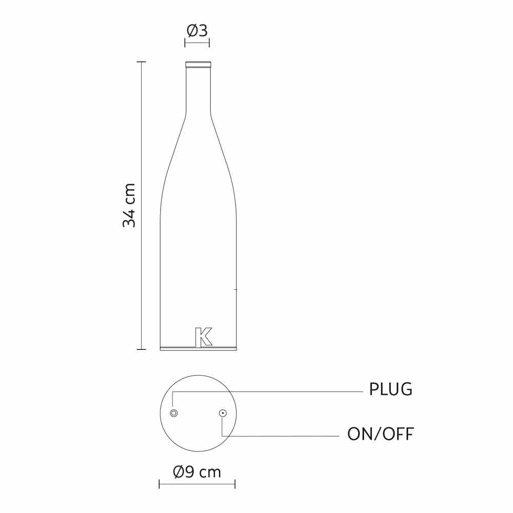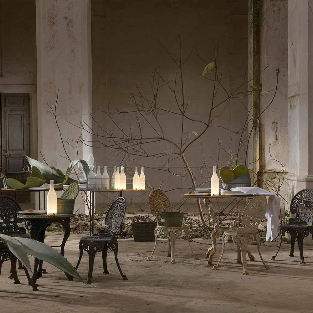 Diese originelle und einzigartige Tischlampe hat ein raffiniertes Design in Form einer Flasche mit reinen und einfachen Linien.