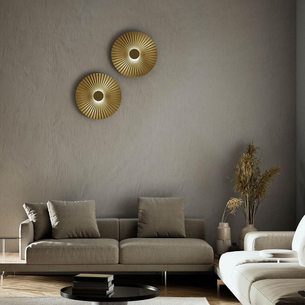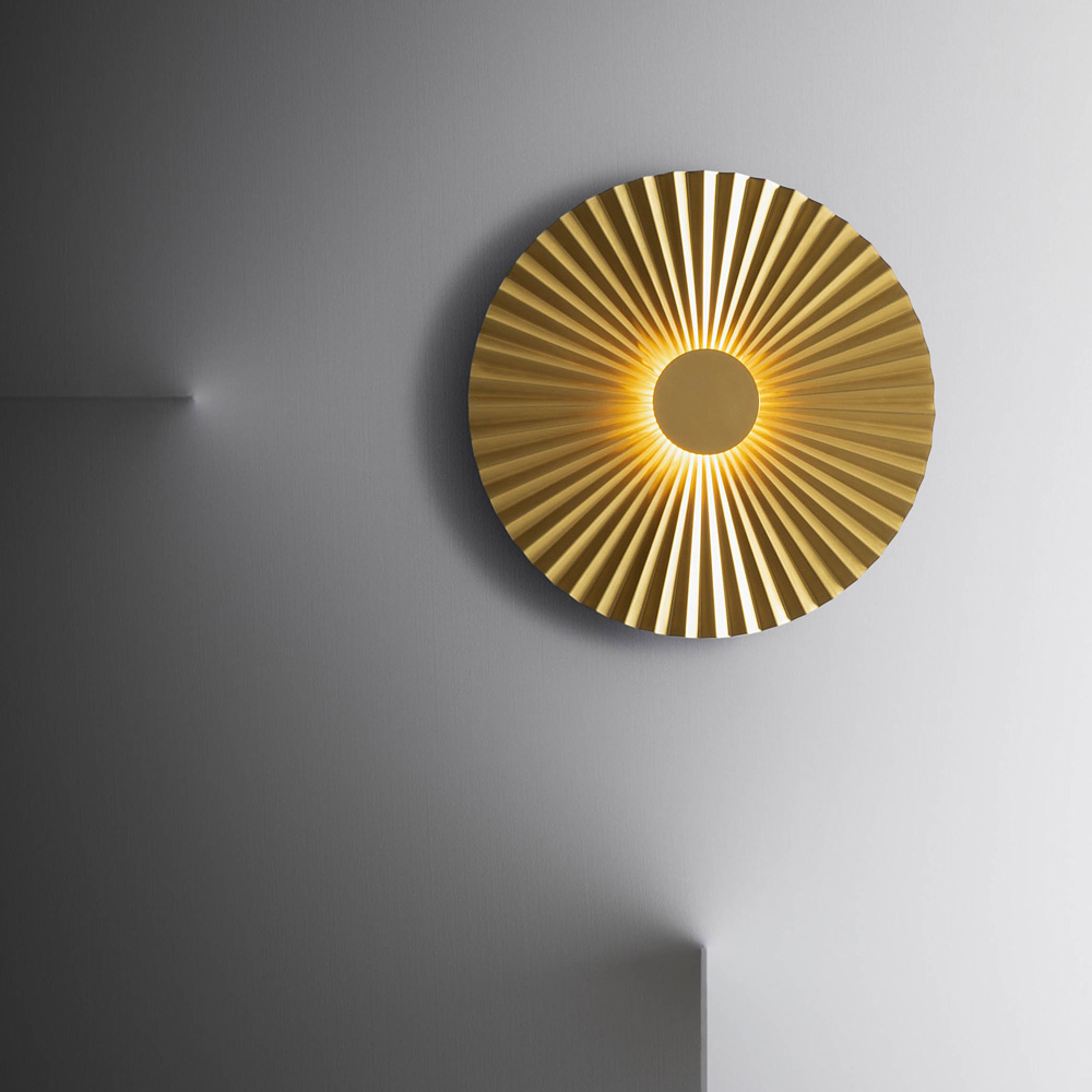 Wandleuchte aus plissiertem, poliertem Naturmessing, 2 Größen made in Italy.
