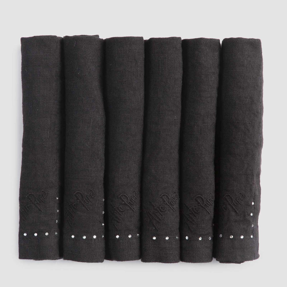 Serviette in schwarzem Leinen oder Butter mit Kristallen, 6 Luxusstücke made in Italy.