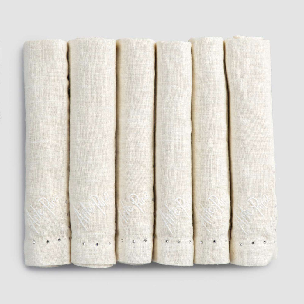 Der Wert der Tradition verbindet den modernen Lebensstil mit dem Service von 6 Servietten aus schwarzem Leinen oder Butter, angereichert mit kostbaren Kristallen für ein elegantes und luxuriöses Design.