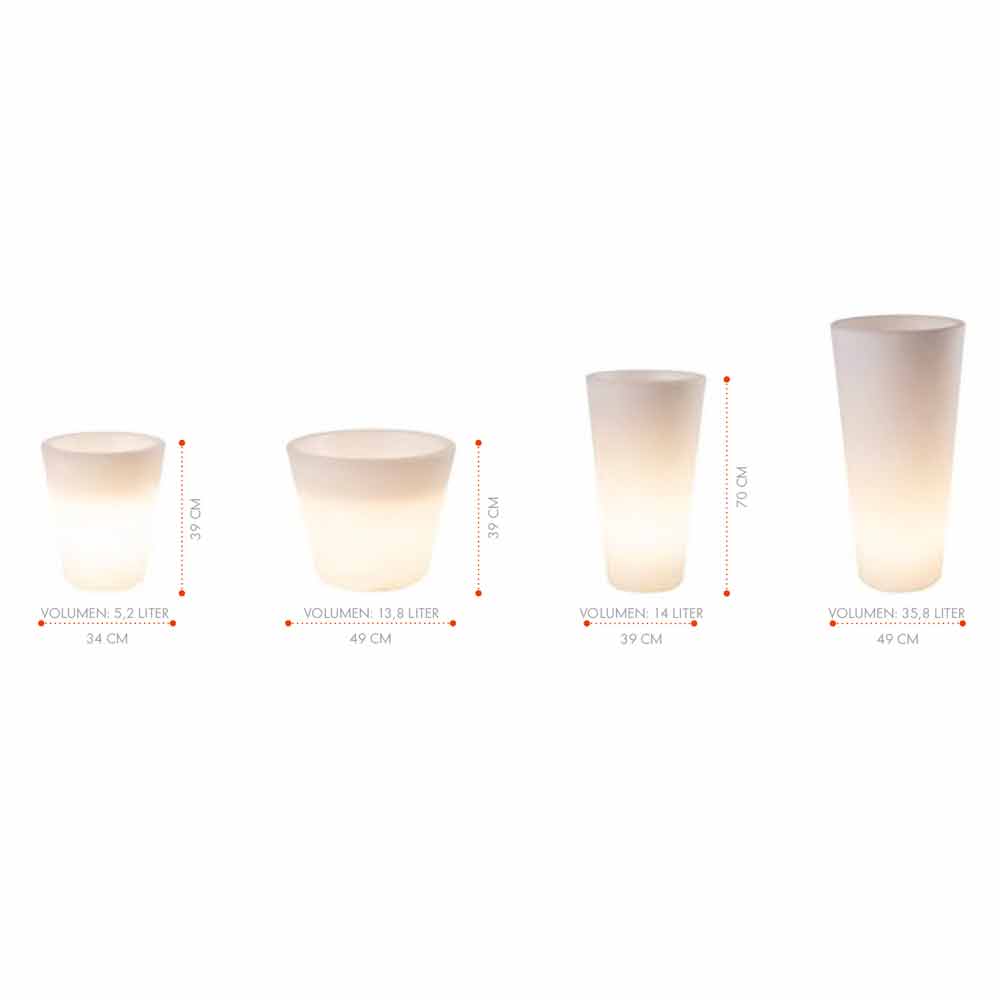 Ein vielseitiges und multifunktionales Produkt: Die leuchtende Vase in verschiedenen Größen und Farben trägt zu einer einladenden und modernen Umgebung bei.