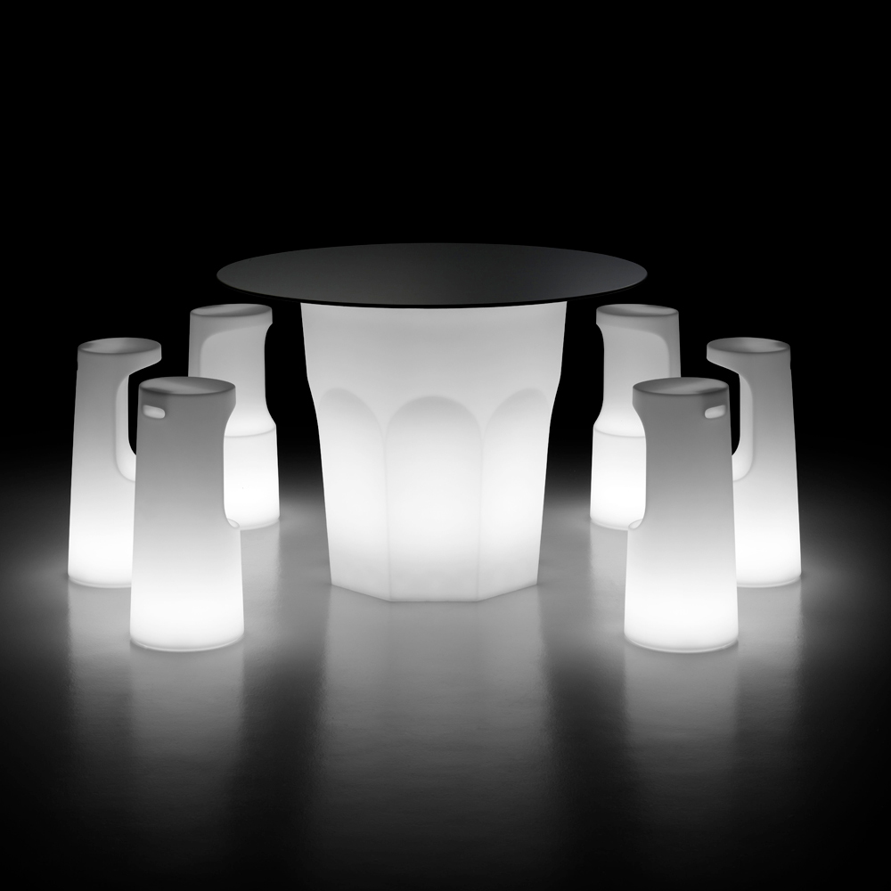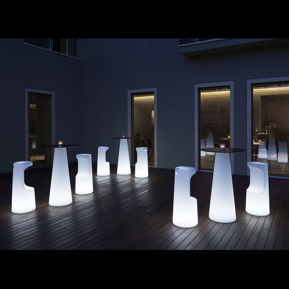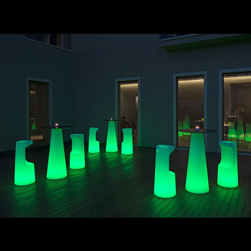 Hochwertiger Hocker aus Polyethylen für den Außenbereich mit LED-Licht Made in Italy.