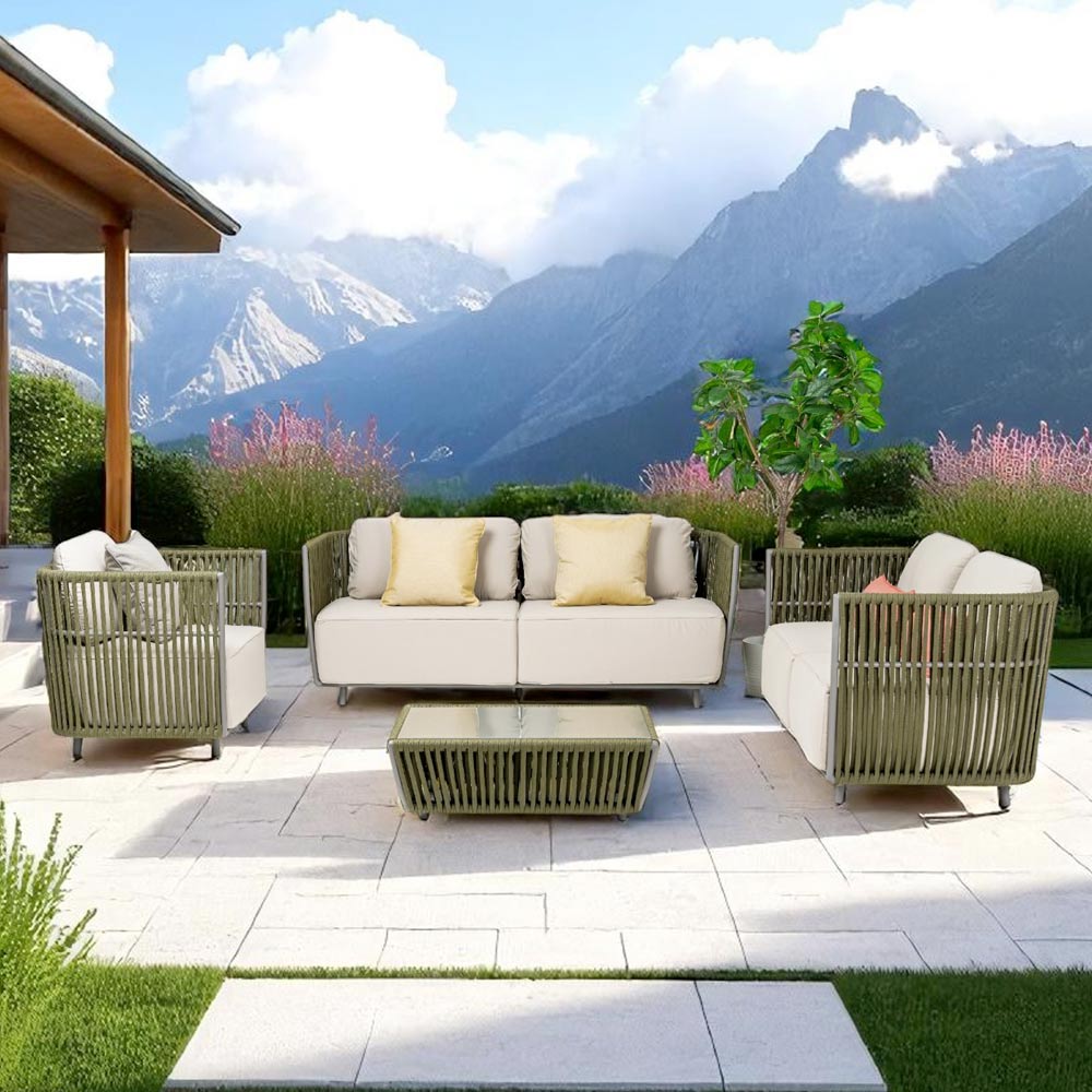 Dank der Verwendung spezieller hochwertiger Materialien garantiert diese Outdoor-Lounge eine hervorragende Beständigkeit gegen Witterungseinflüsse, Schmutz, Staub und Flecken.