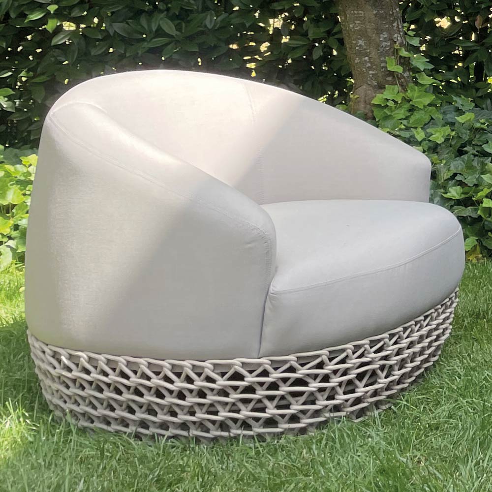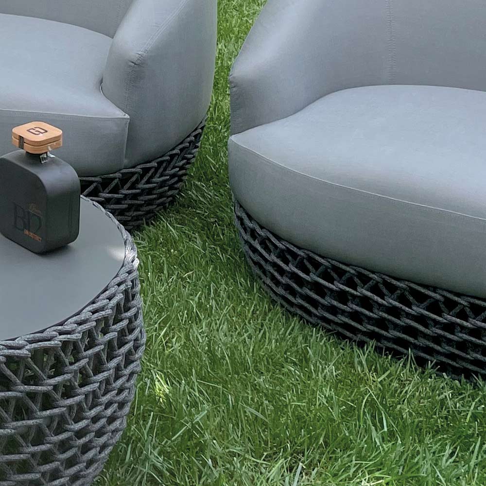 Die Kissen aus wasserdichtem Outdoor-Gummi garantieren maximalen Komfort und einwandfreie Witterungsbeständigkeit , während die im Inneren der Sitze verborgene Aluminiumstruktur für Stabilität und Haltbarkeit sorgt.