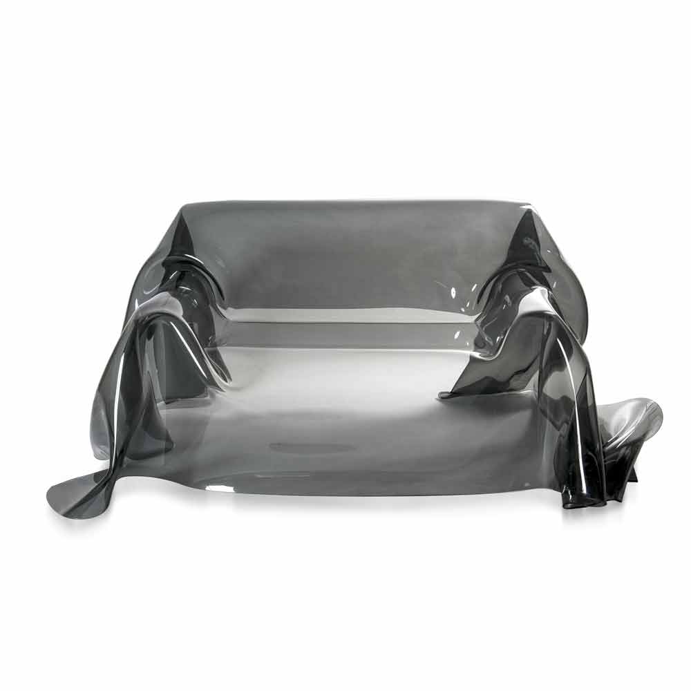 Das drapierte Sofa Jolly ist ein Unikat. Aus einer 100% reinen Polymerfolie in PMMA Plexiglas, vollständig von Hand drapiert, entsteht ein einzigartiges und unwiederholbares Sofa. Die gebaute Struktur ist völlig selbsttragend und bietet Platz für 2 Personen. Die physikalisch-technischen Eigenschaften von Plexiglas (stoßfest, nicht verformbar, unveränderlich, wärmeisolierend) machen diesen Artikel zu einem praktischen und funktionellen Möbelstück, das für jede Umgebung geeignet ist. Die Helligkeit und Helligkeit werden über die Zeit konstant und unverändert beibehalten. Das PMMA Plexiglas aus reinem Polymer ist ungiftig, hypoallergen, geruchlos und antibakteriell. 100% recycelbar. Entworfen, entworfen und hergestellt in Italien, mit italienischen Materialien.